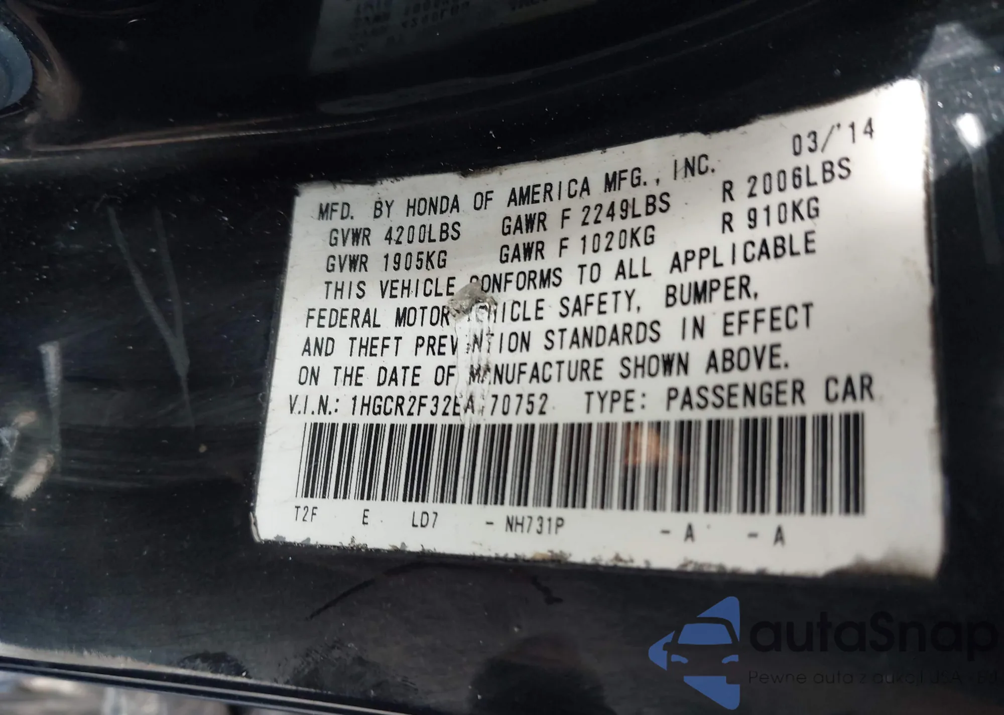 • VIN 1HGCR2F33EA294755
