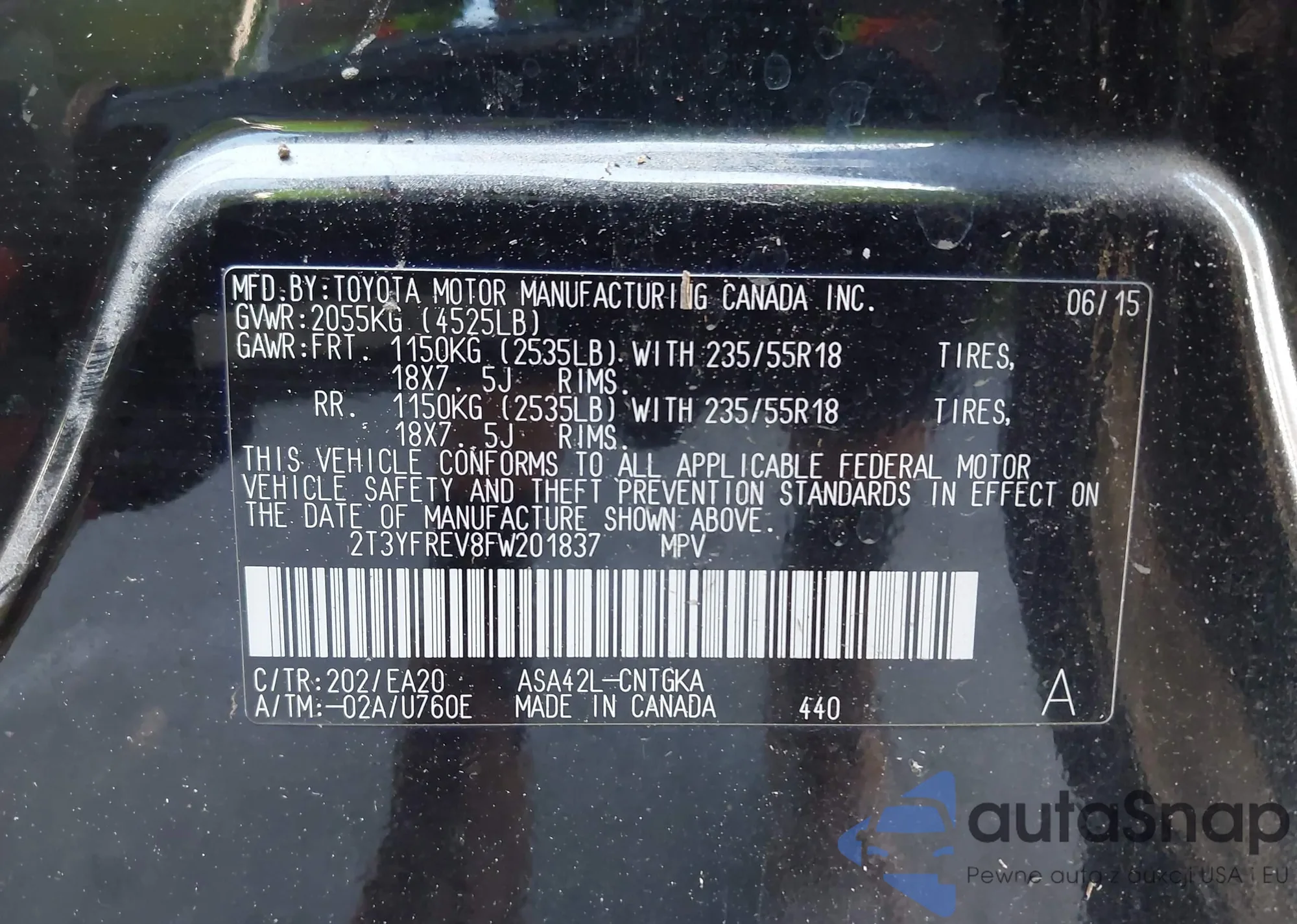 • VIN 2T3YFREV8FW201837