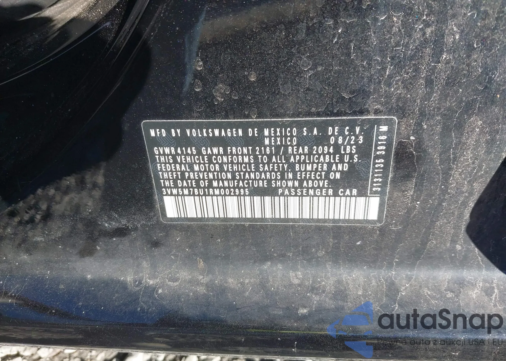 LOT: 43911318 VIN: 3VW5M7BU1RM002995