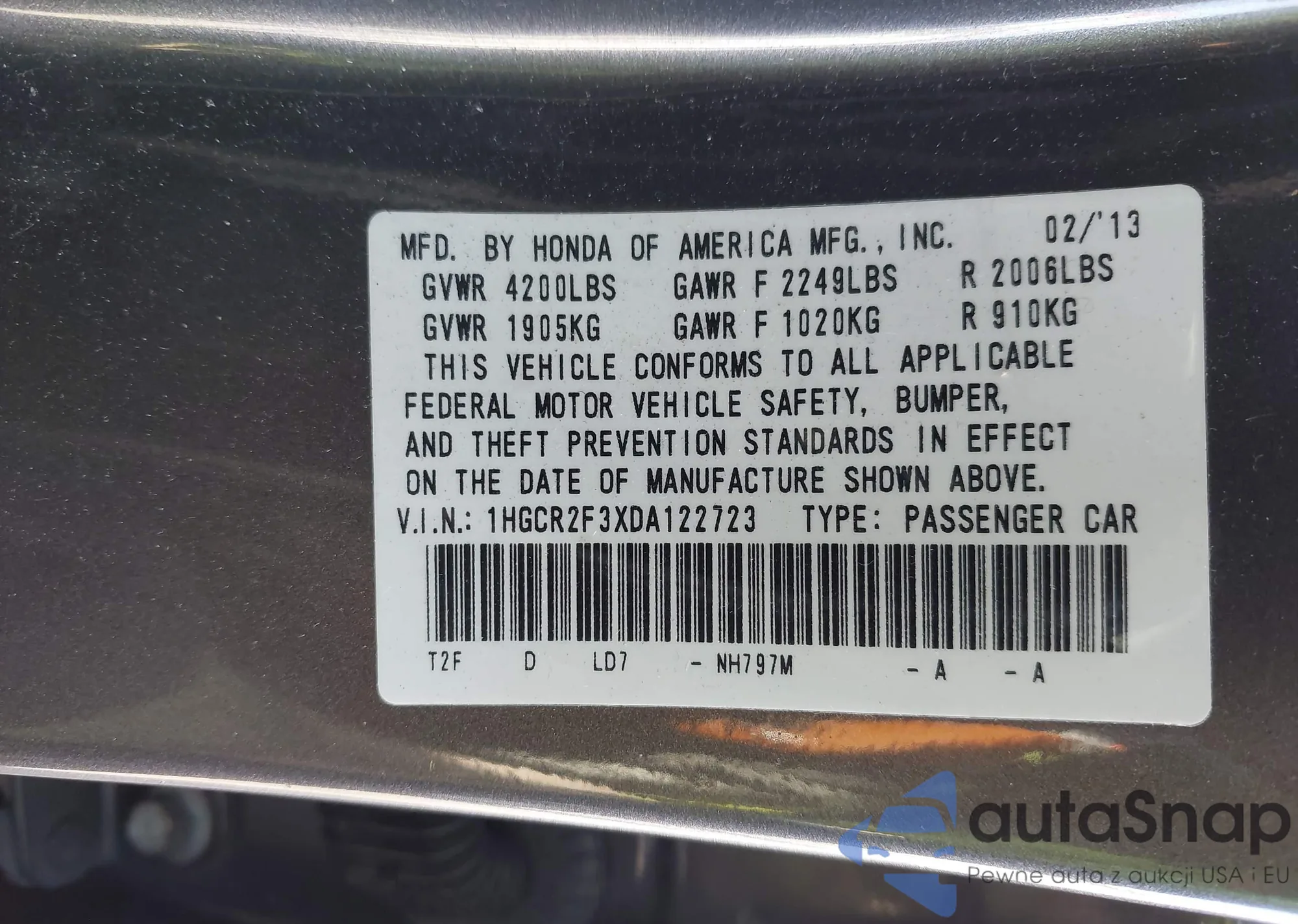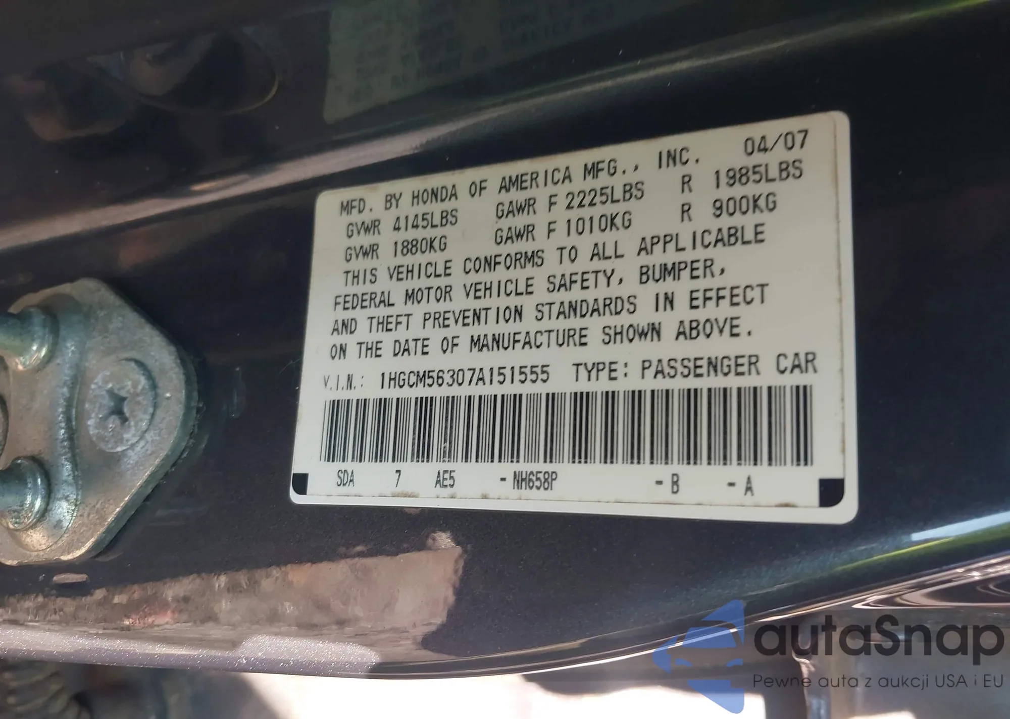 LOT: 43779235 VIN: 1HGCM56307A151555