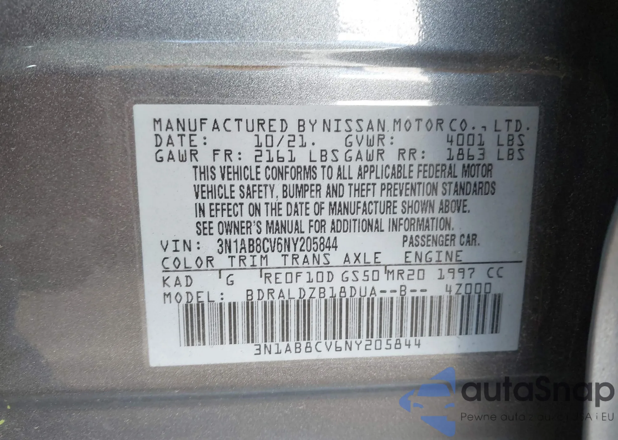 • VIN 3N1AB8CV6NY205844