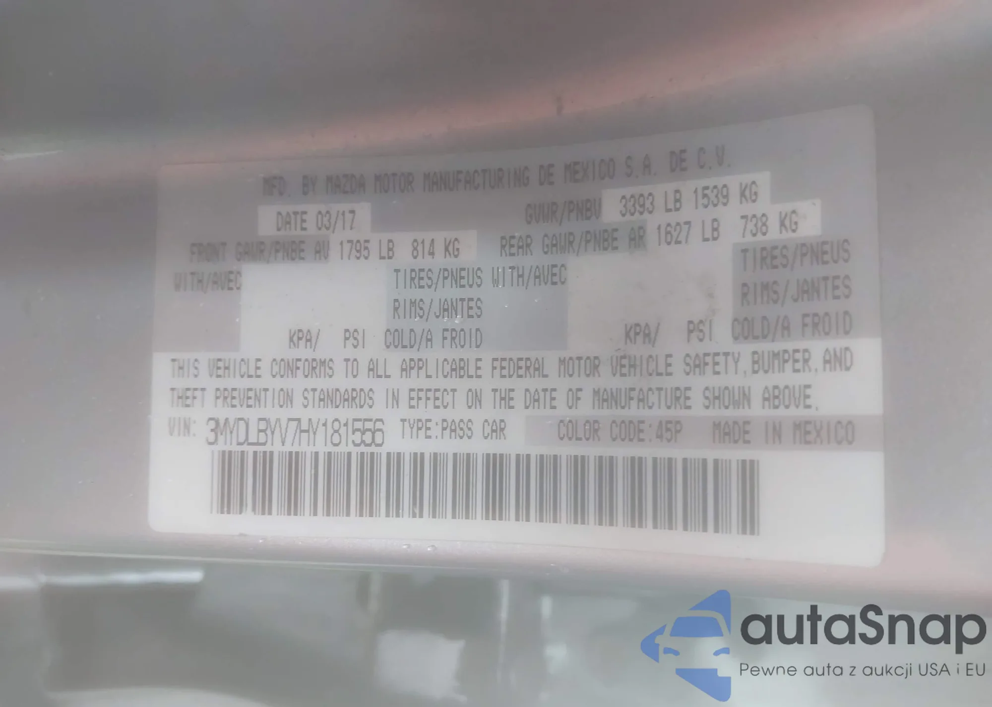 LOT: 43806341 VIN: 3MYDLBYV7HY181556