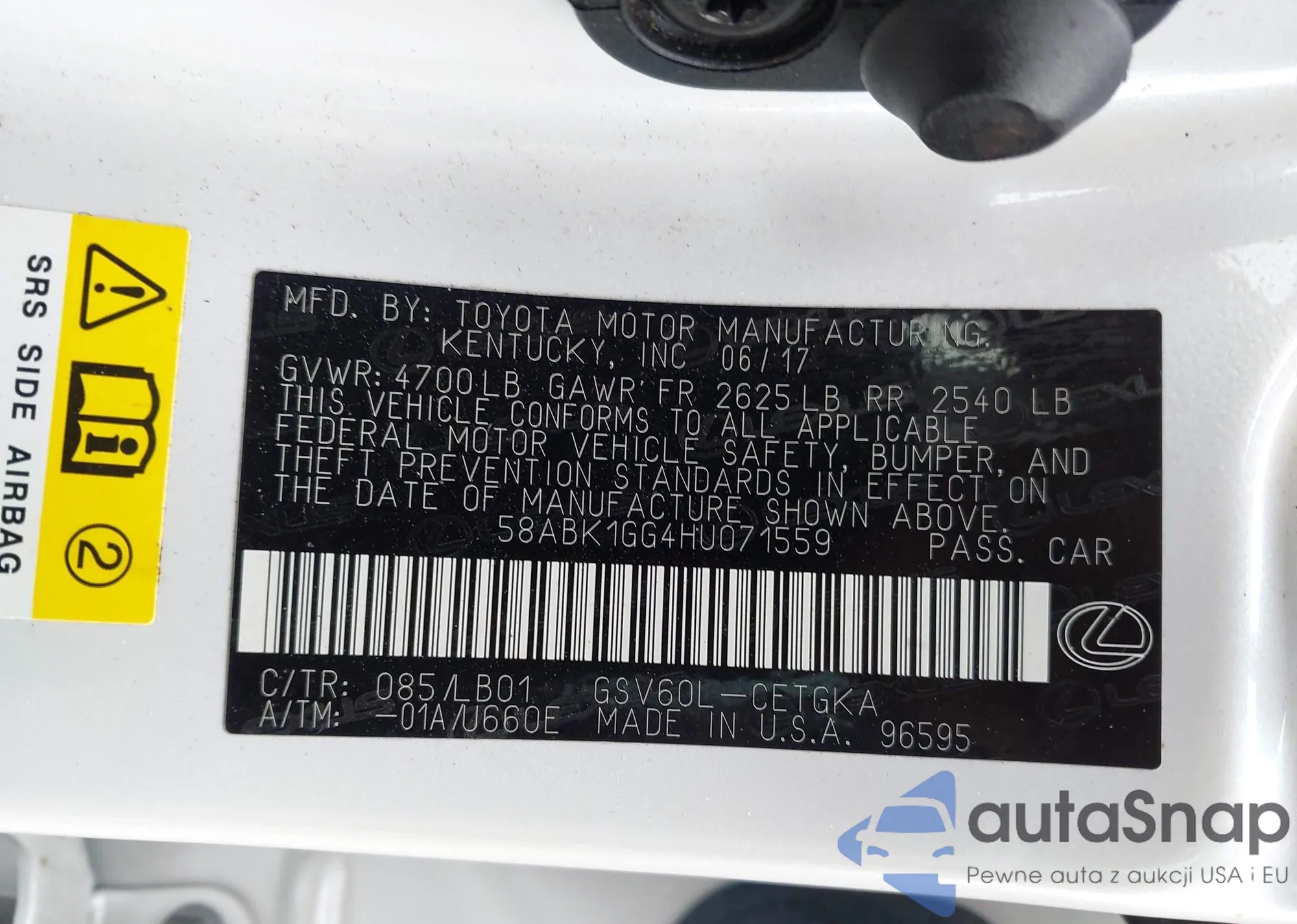 LOT: 43571495 VIN: 58ABK1GG4HU071559