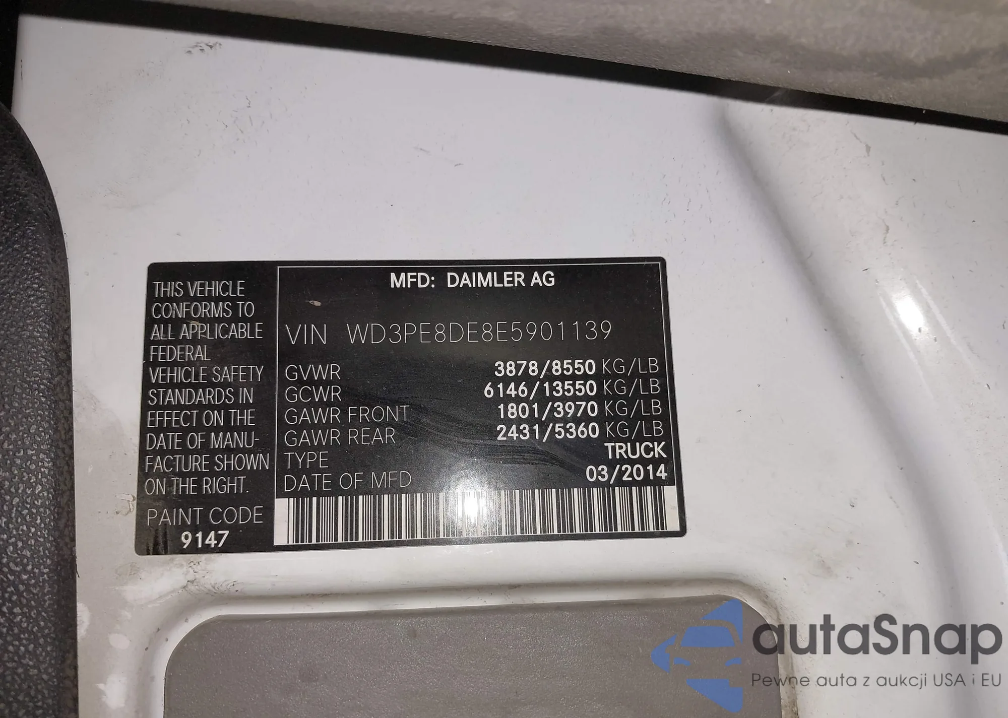 LOT: 43719340 VIN: WD3PE8DE8E5901139