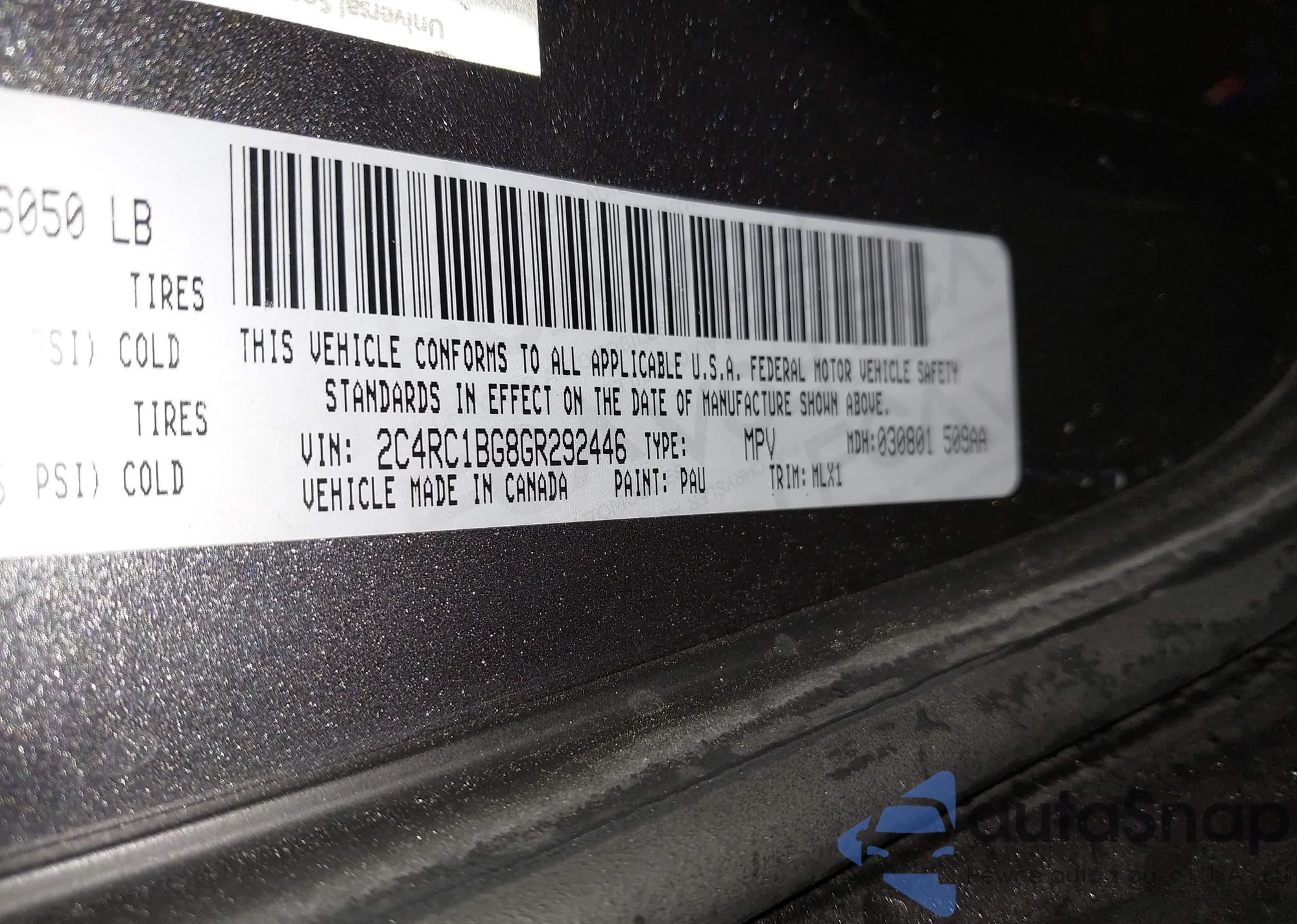 • VIN 2C4RC1BG8GR292446