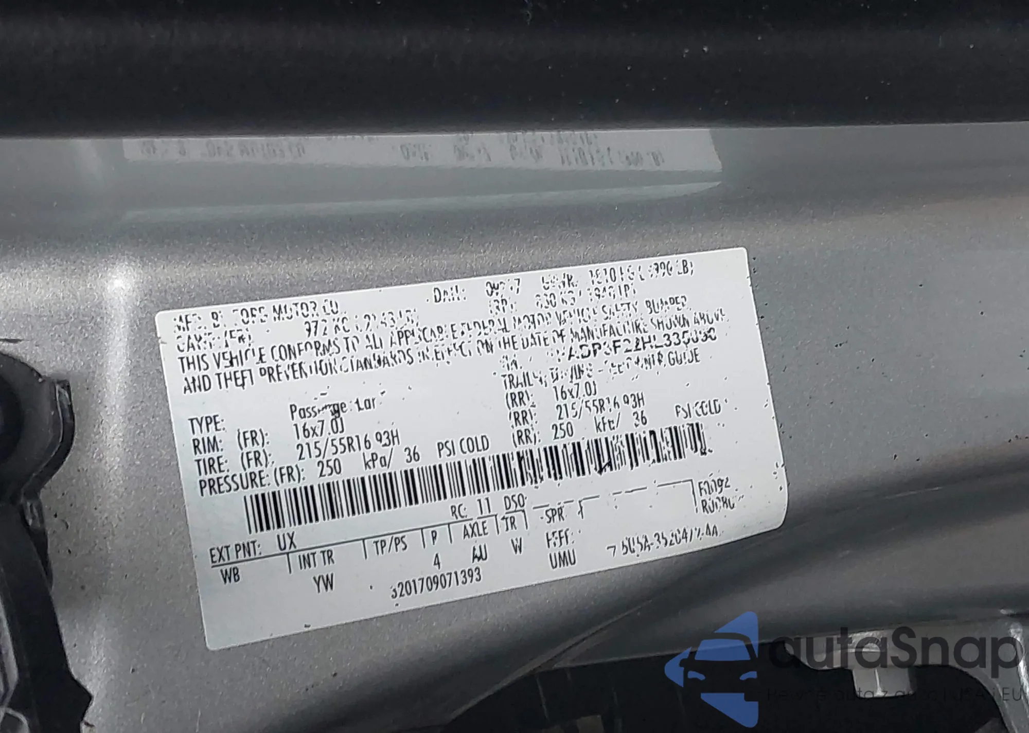 • VIN 3FAHP0JG9AR421104