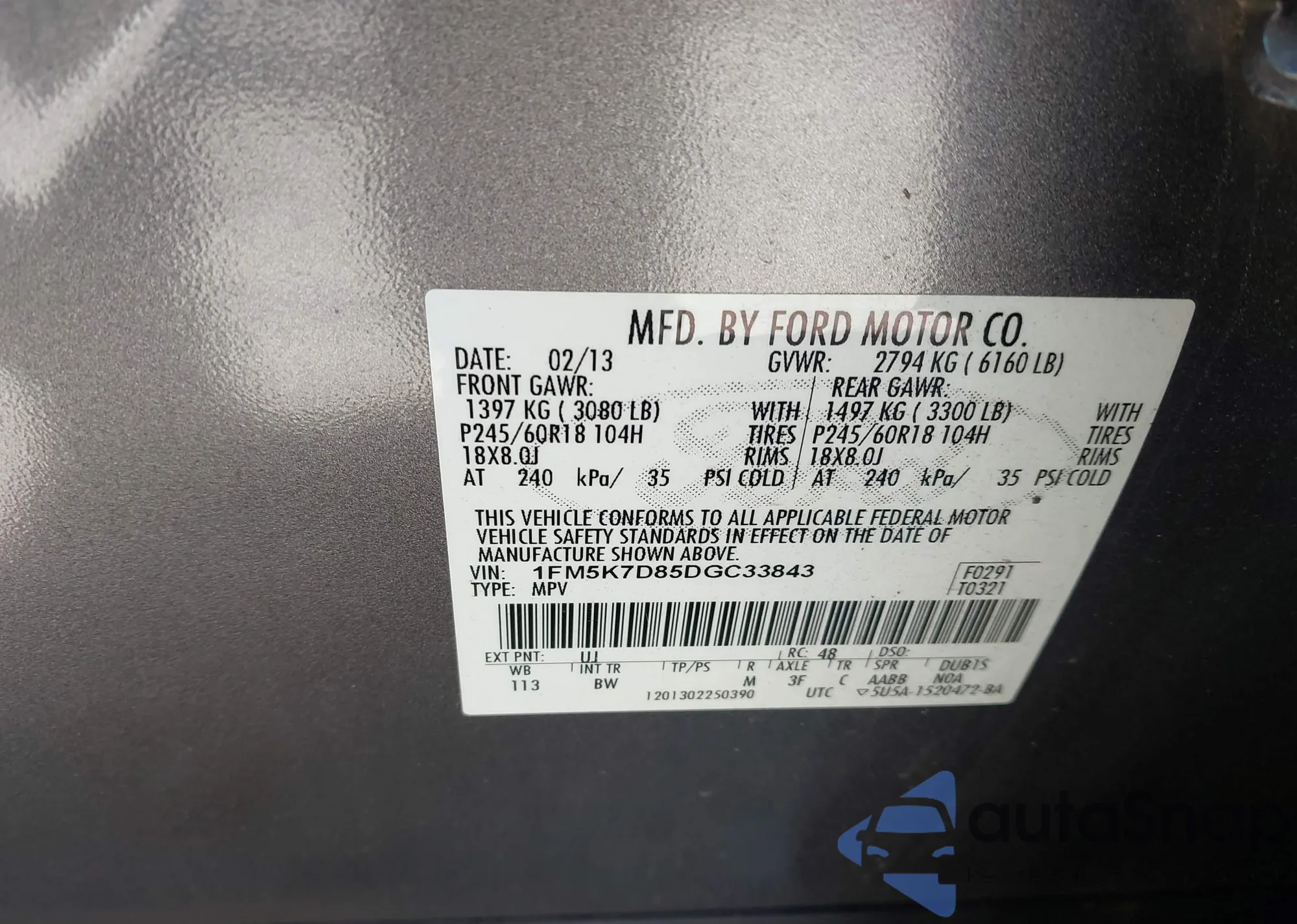 LOT: 43665499 VIN: 1FM5K7D85DGC33843
