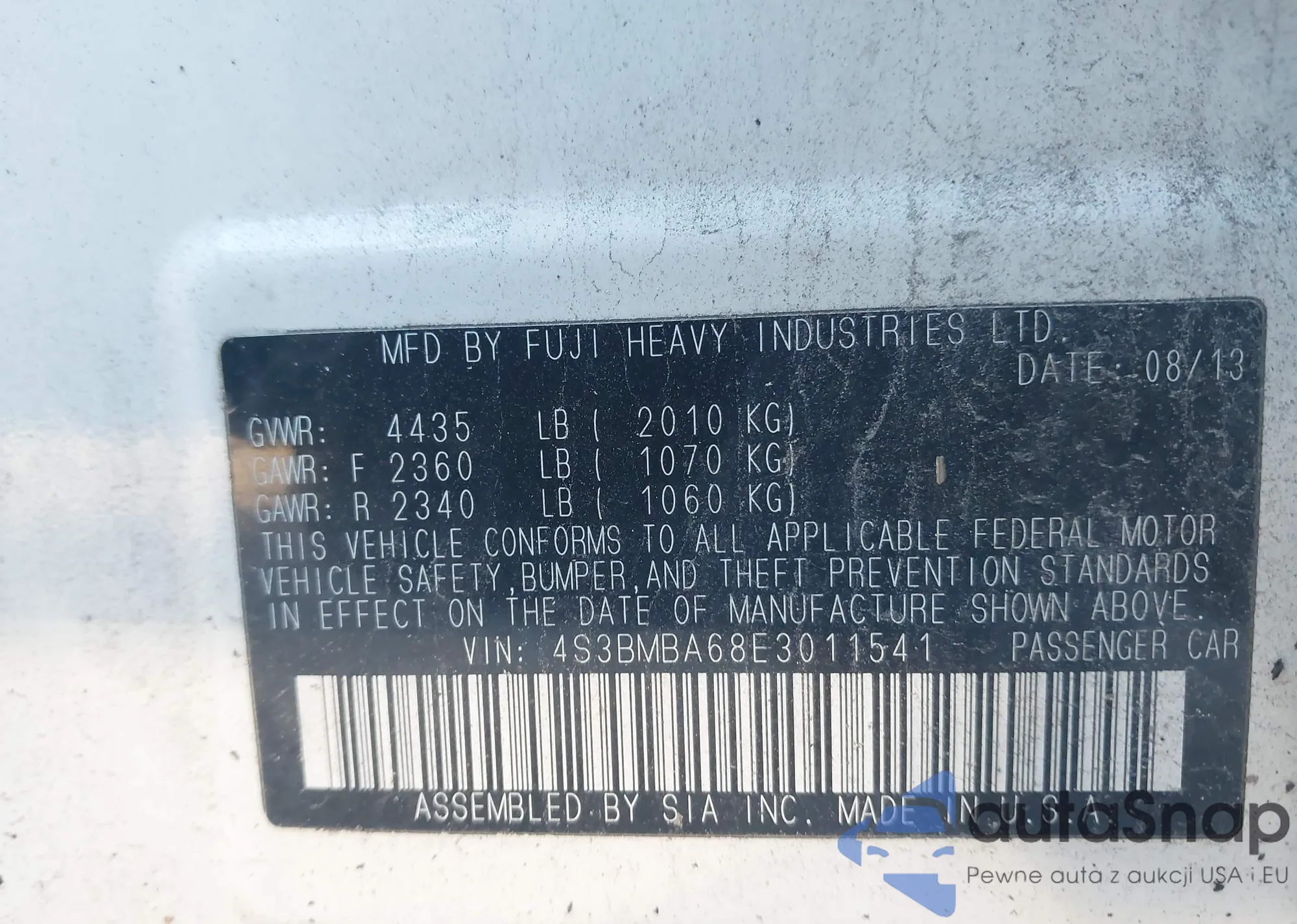• VIN 4S3BMBA68E3011541