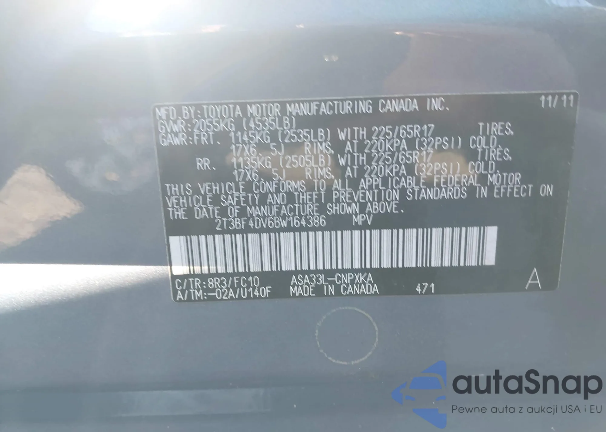 LOT: 43773267 VIN: 2T3BF4DV6BW164386
