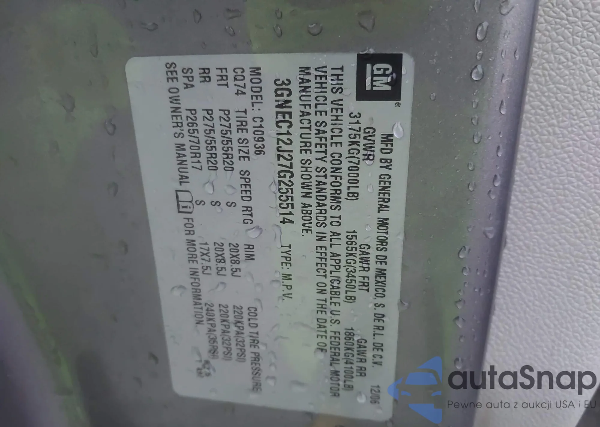 • VIN 3GNEC12J27G255514