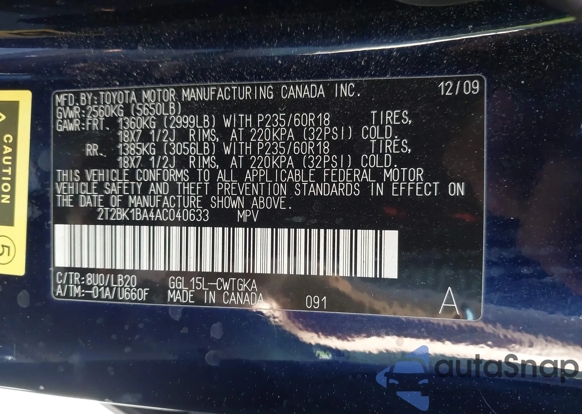 LOT: 43475657 VIN: 2T2BK1BA4AC040633