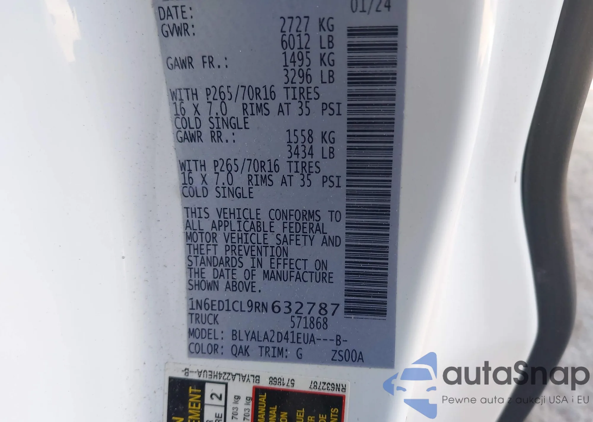 • VIN 1N6ED1CL9RN632787