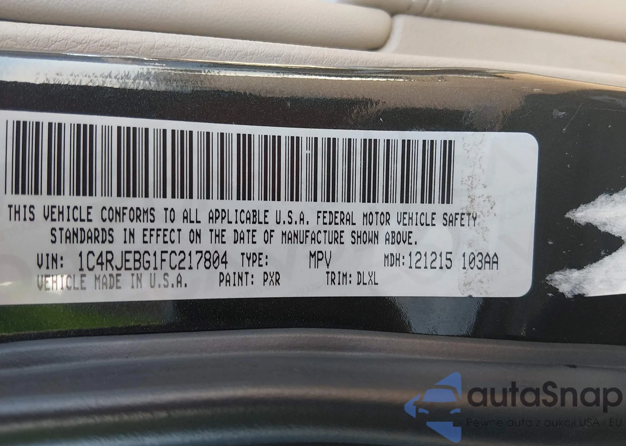 LOT: 43907346 VIN: 1C4RJEBG1FC217804