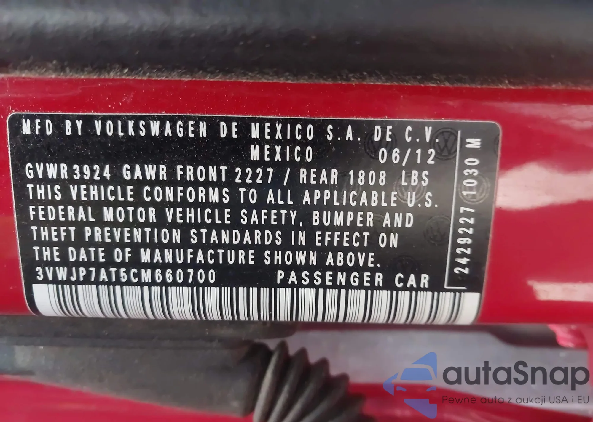 • VIN 1V2XR2CA6KC619402