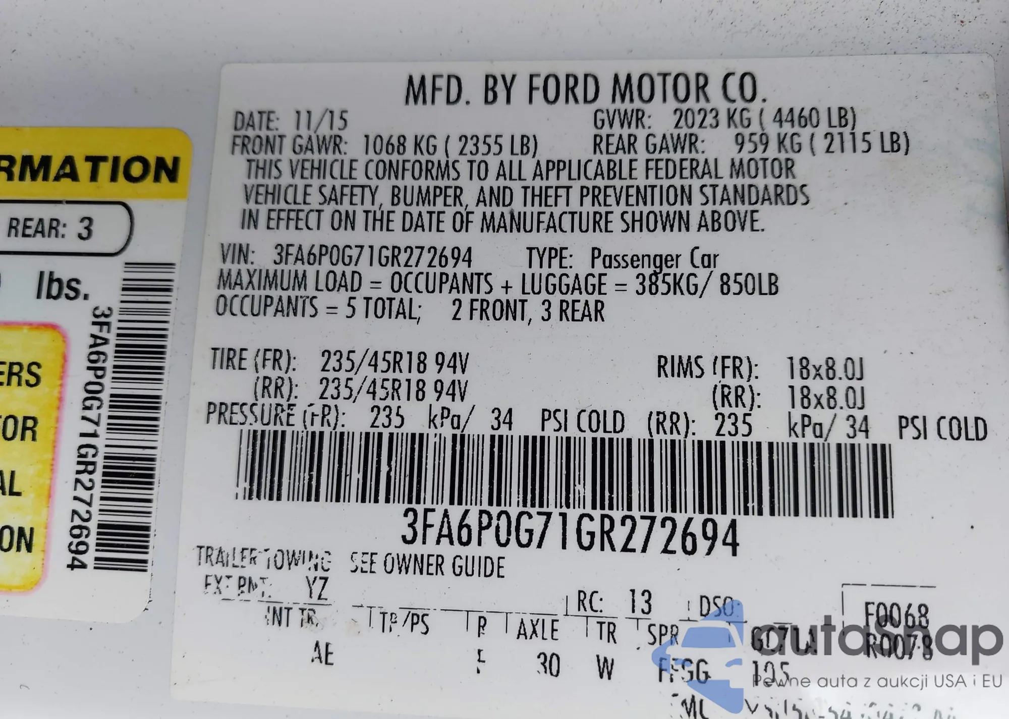 • VIN 3FA6P0G71GR272694