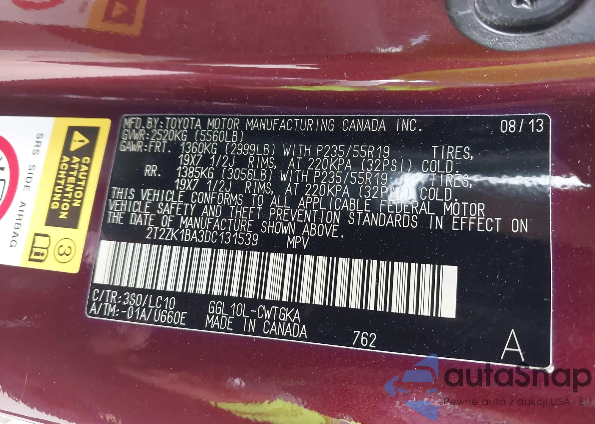 • VIN 2T2ZK1BA3DC131539