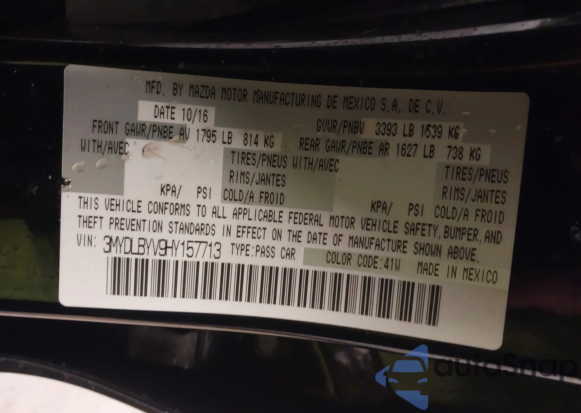 LOT: 43674572 VIN: JM1BM1W33F1271514