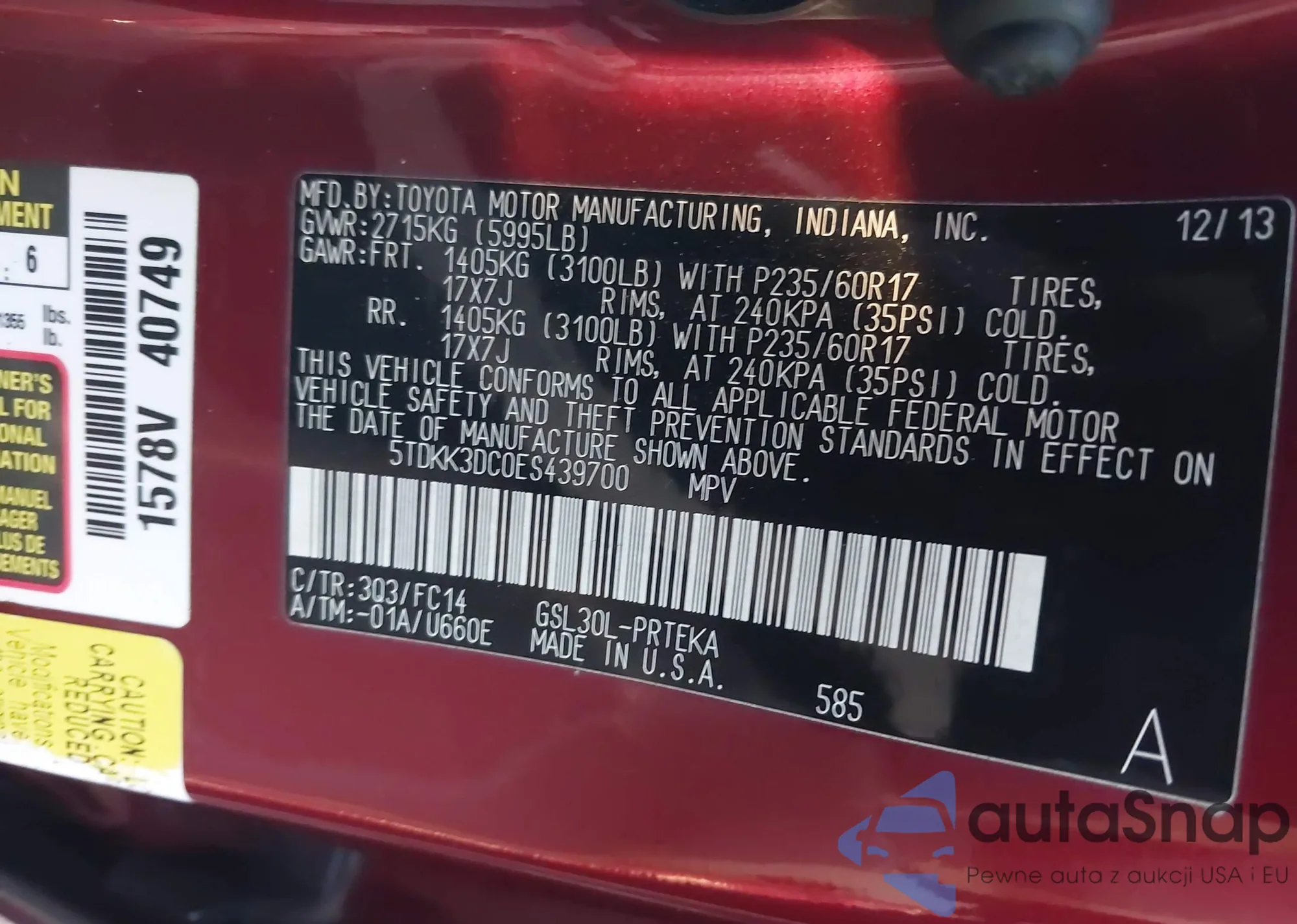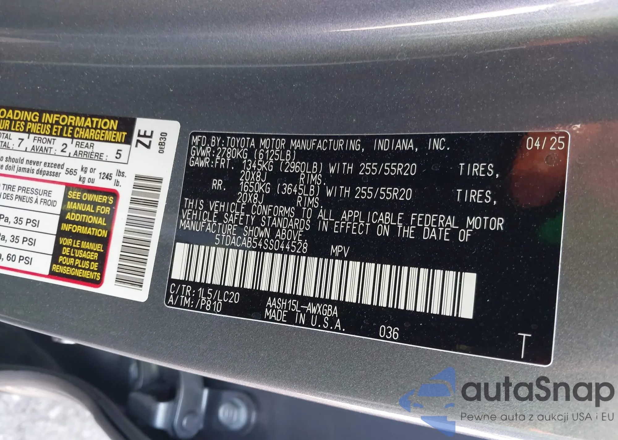• VIN 5TDACAB54SS044528