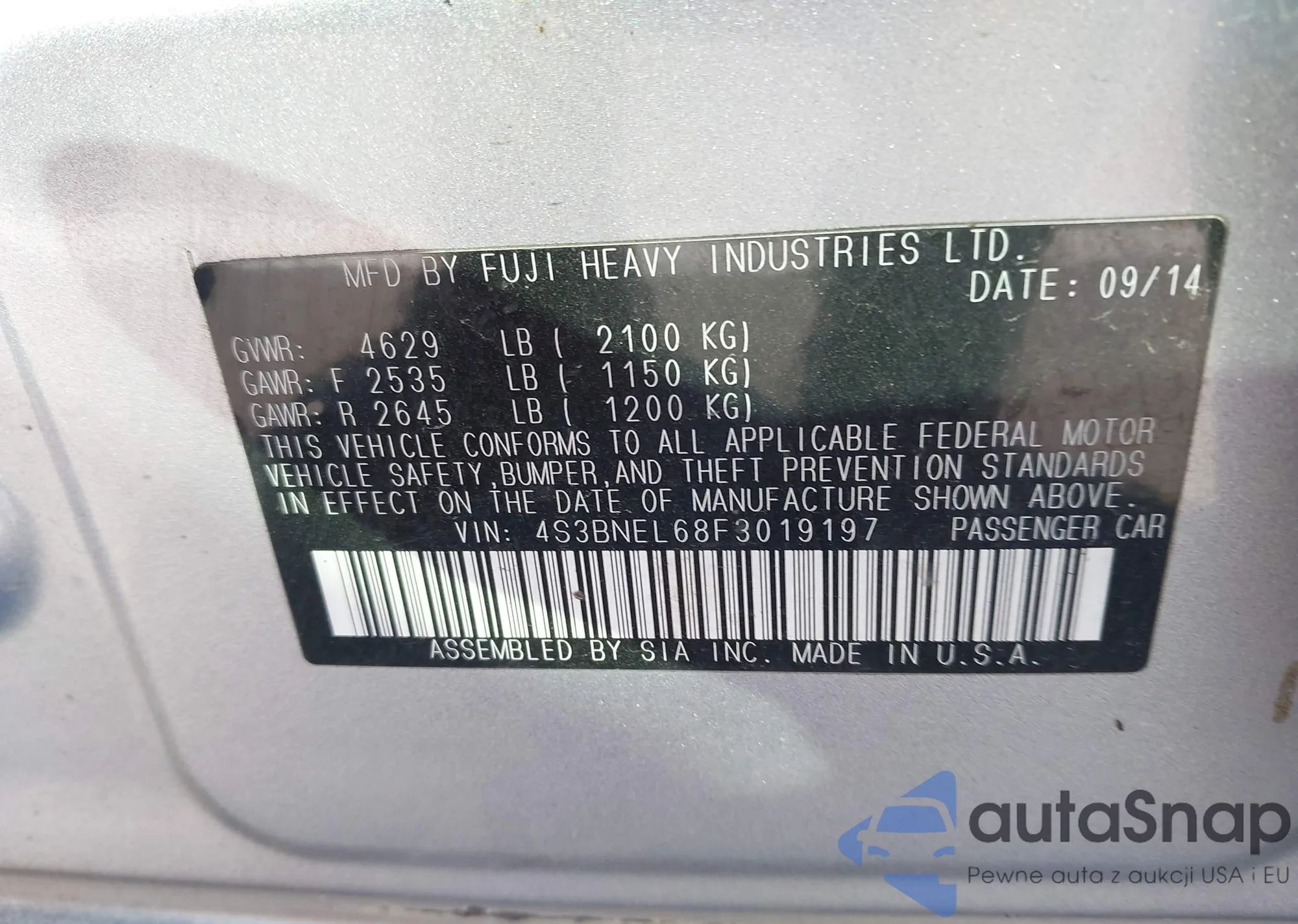LOT: 43421043 VIN: 4S3BNEL68F3019197