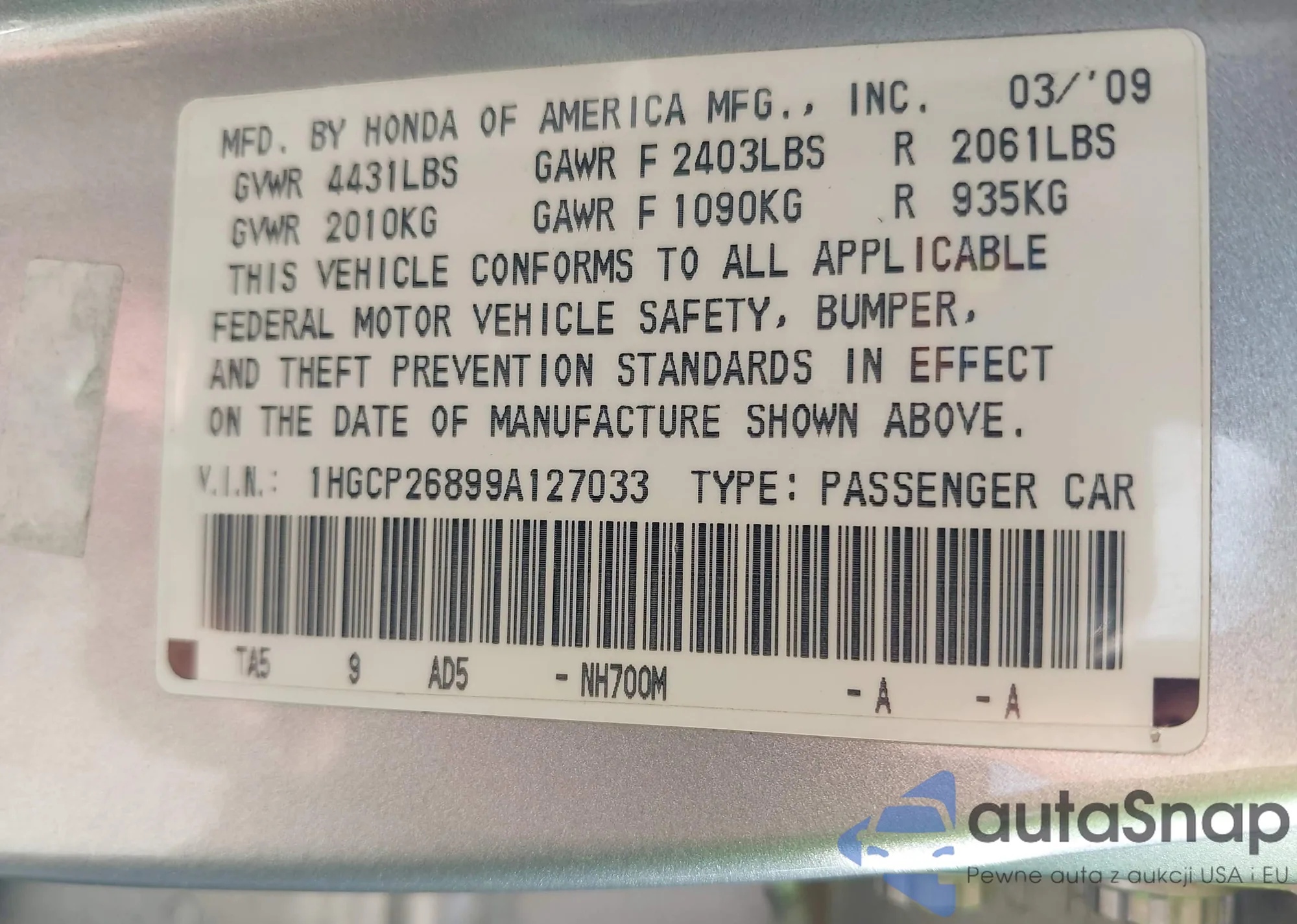 • VIN 2HKRM4H52GH725146