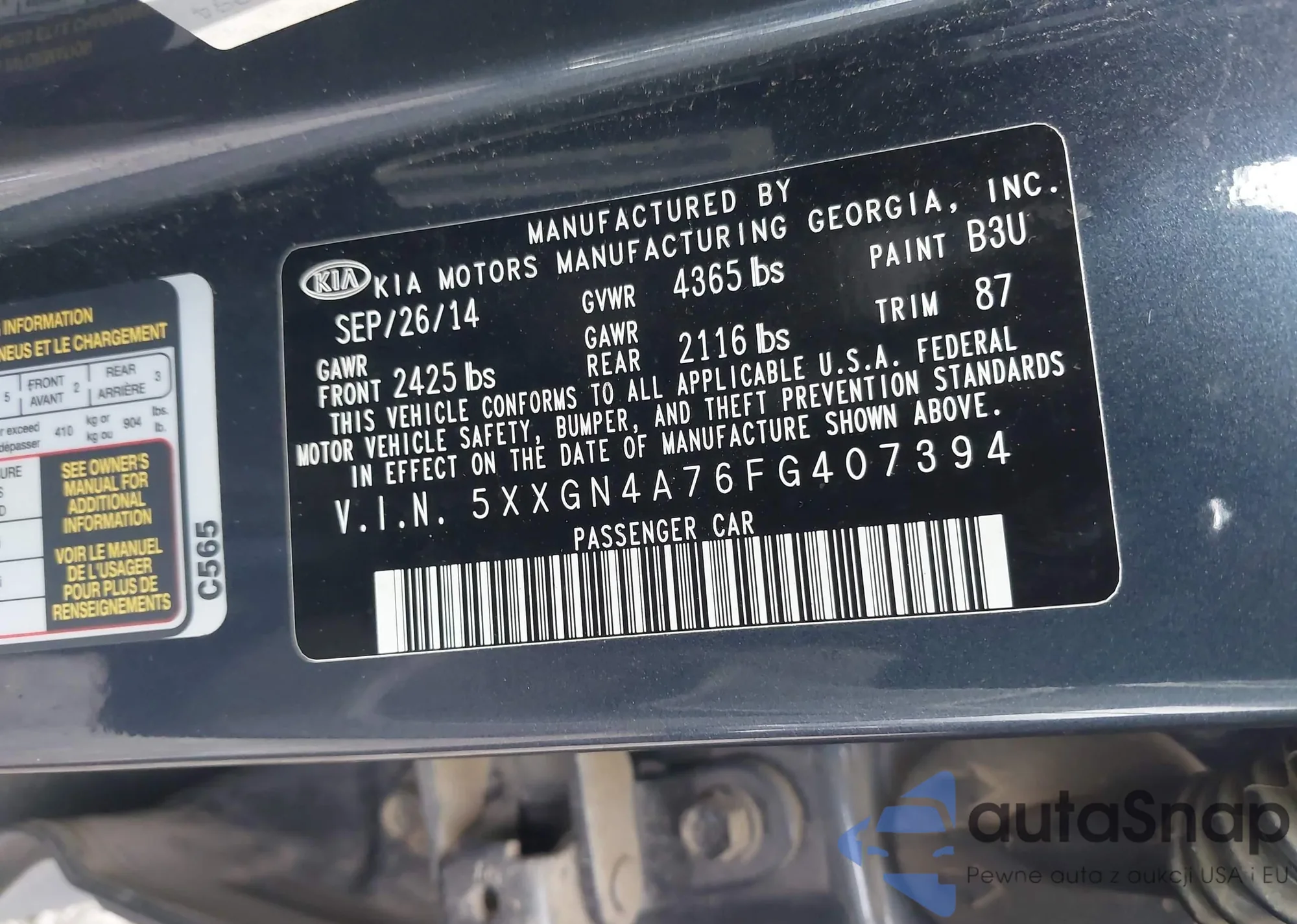 LOT: 43896743 VIN: 5XXGN4A76FG407394