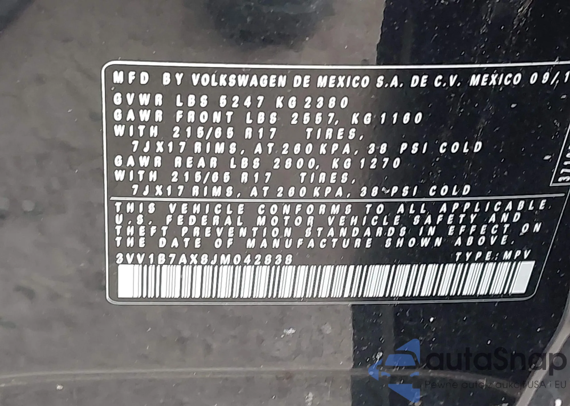 • VIN 3VV1B7AX8JM042838