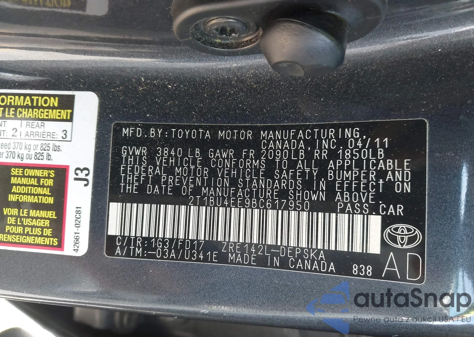 • VIN 2T1BU4EE9BC617950