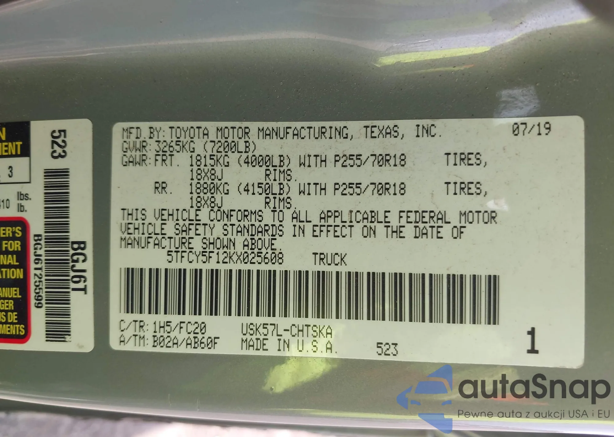 • VIN 1N4BL4FV6KC105661