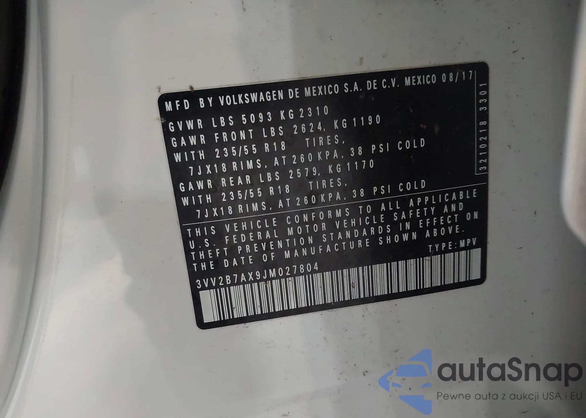 • VIN 3VV2B7AX9JM027804