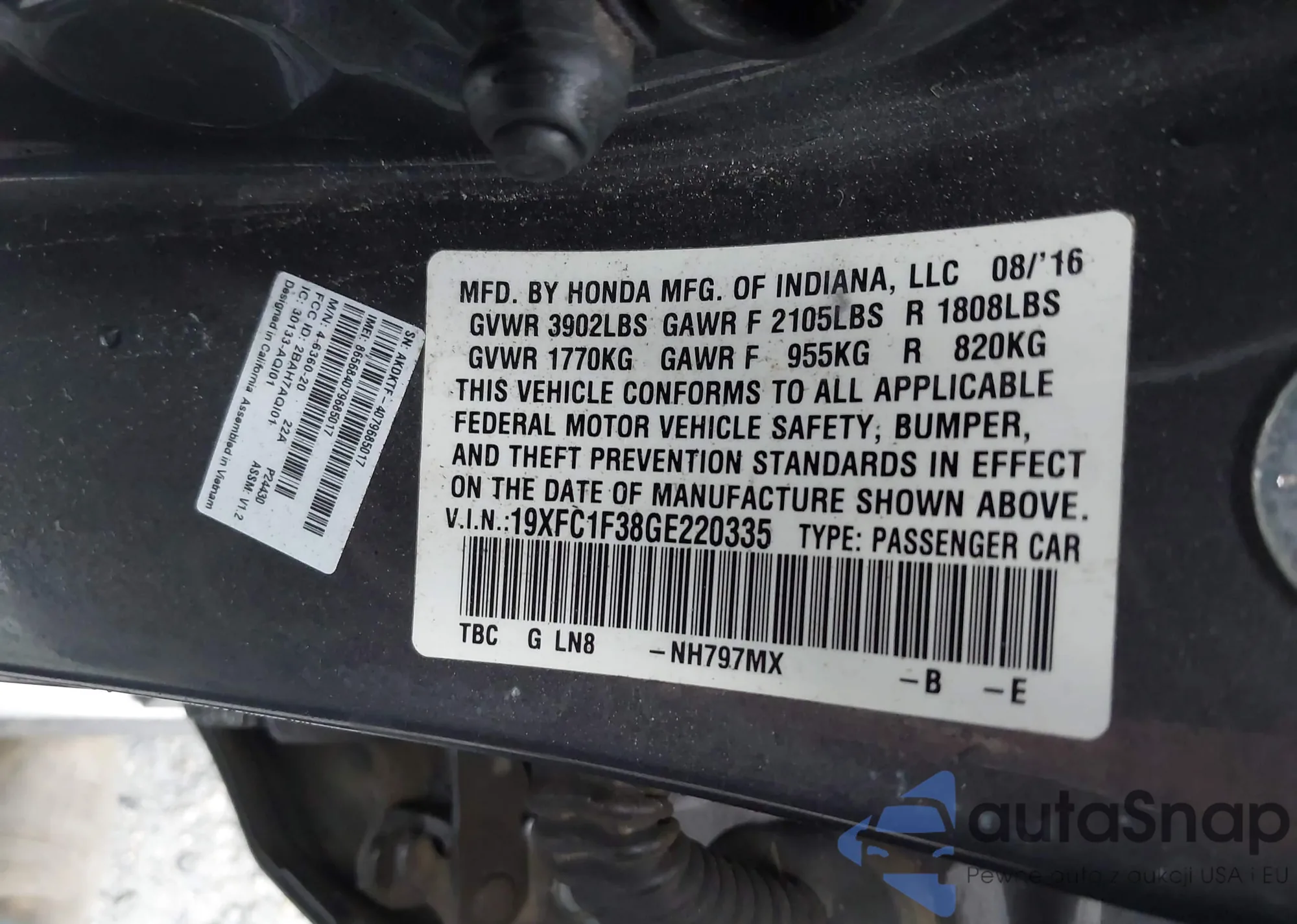 • VIN 19XFC1F38GE220335