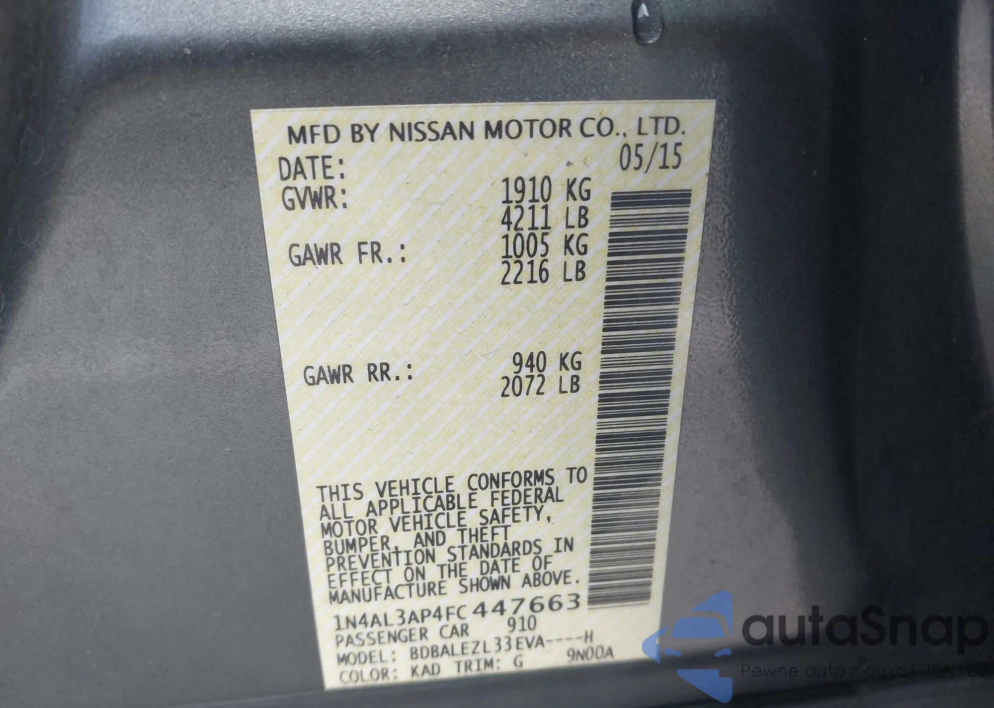 LOT: 43768854 VIN: WBAPK73599A453336
