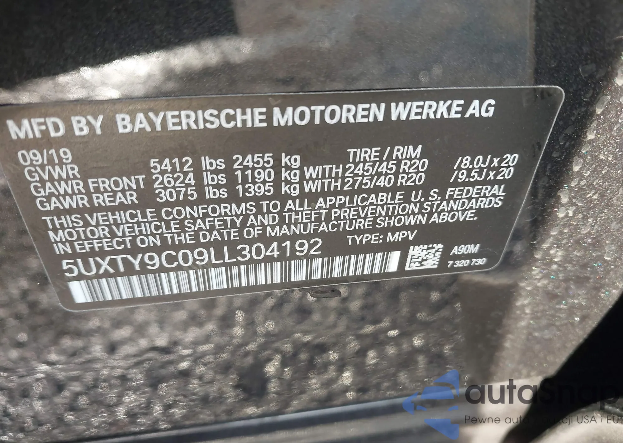 • VIN 5UXTY9C09LL304192