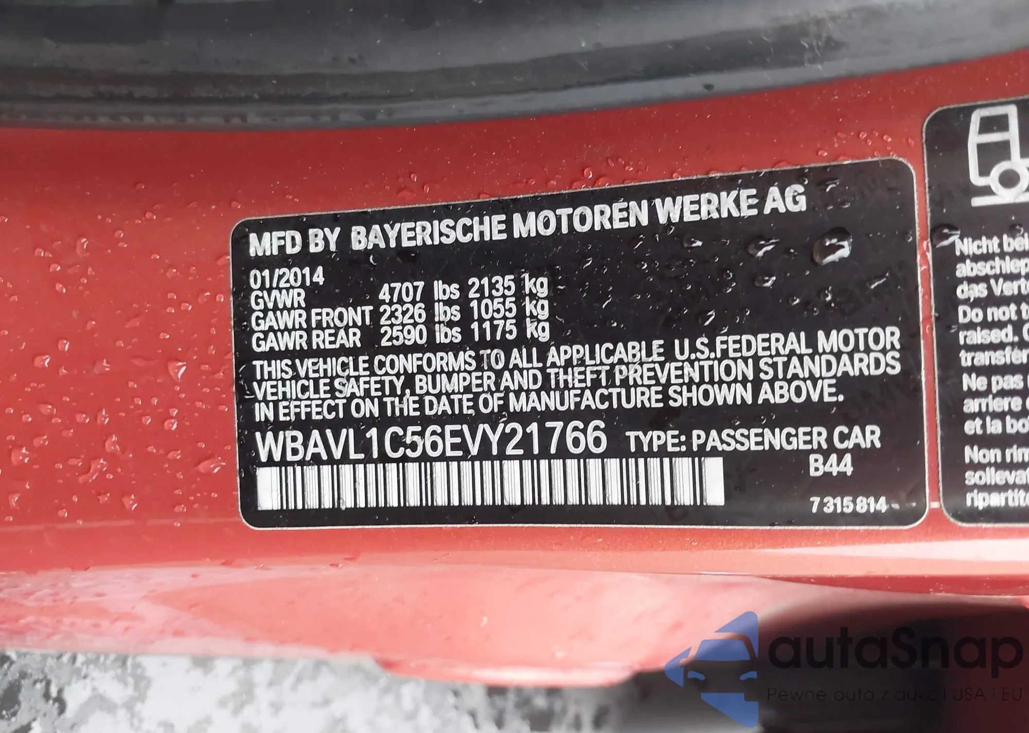 • VIN WBAVL1C56EVY21766