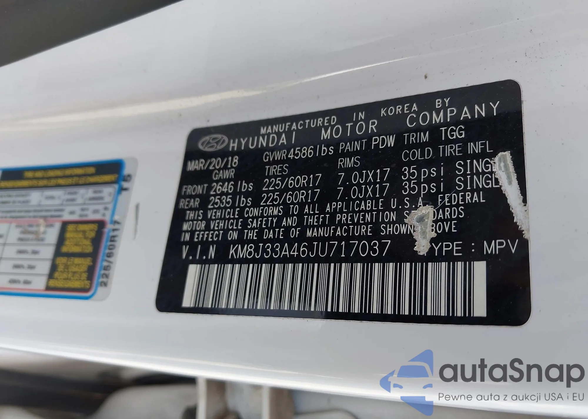 • VIN KM8J33A46JU717037