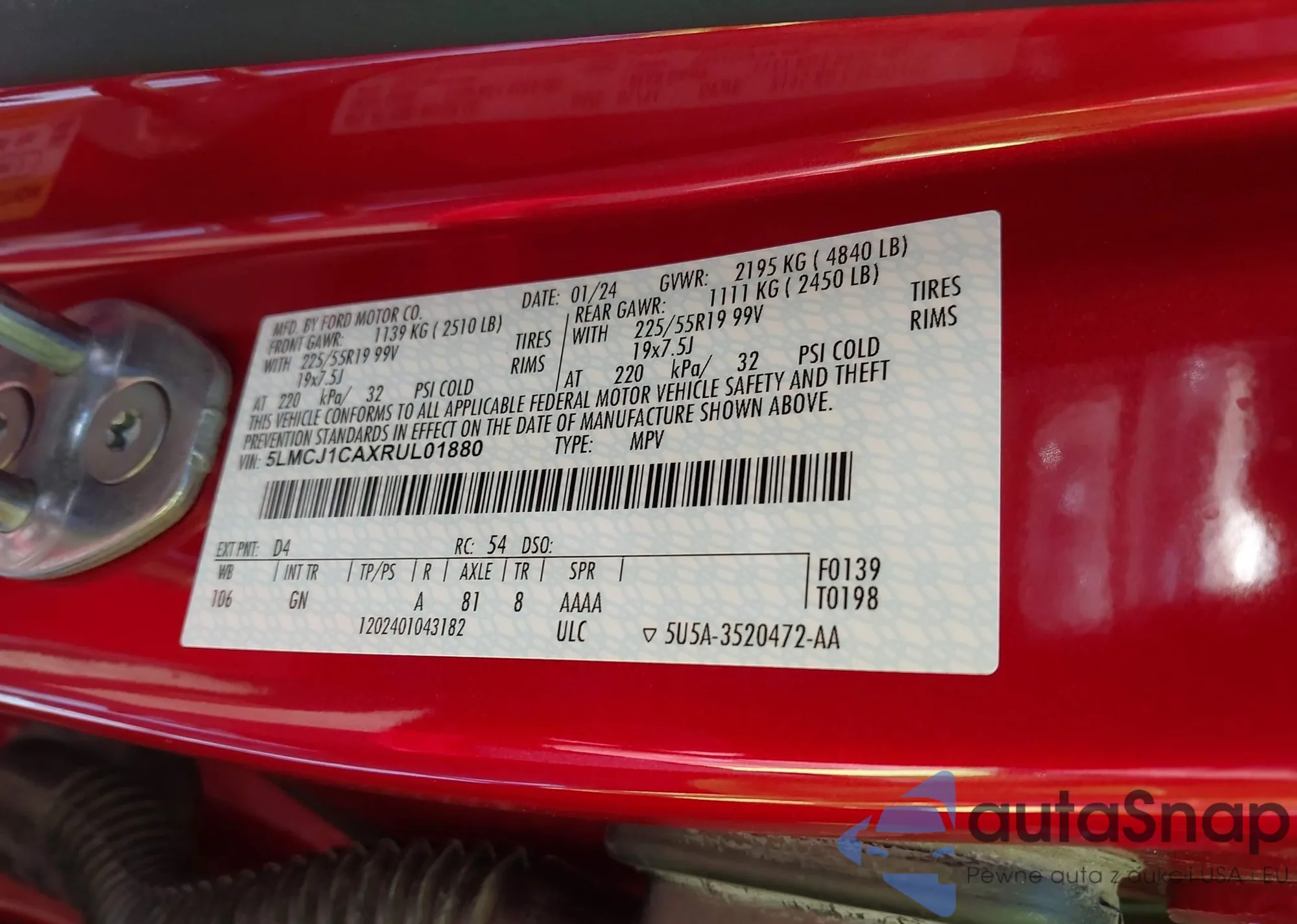LOT: 43776574 VIN: KMHLM4AG9PU548484