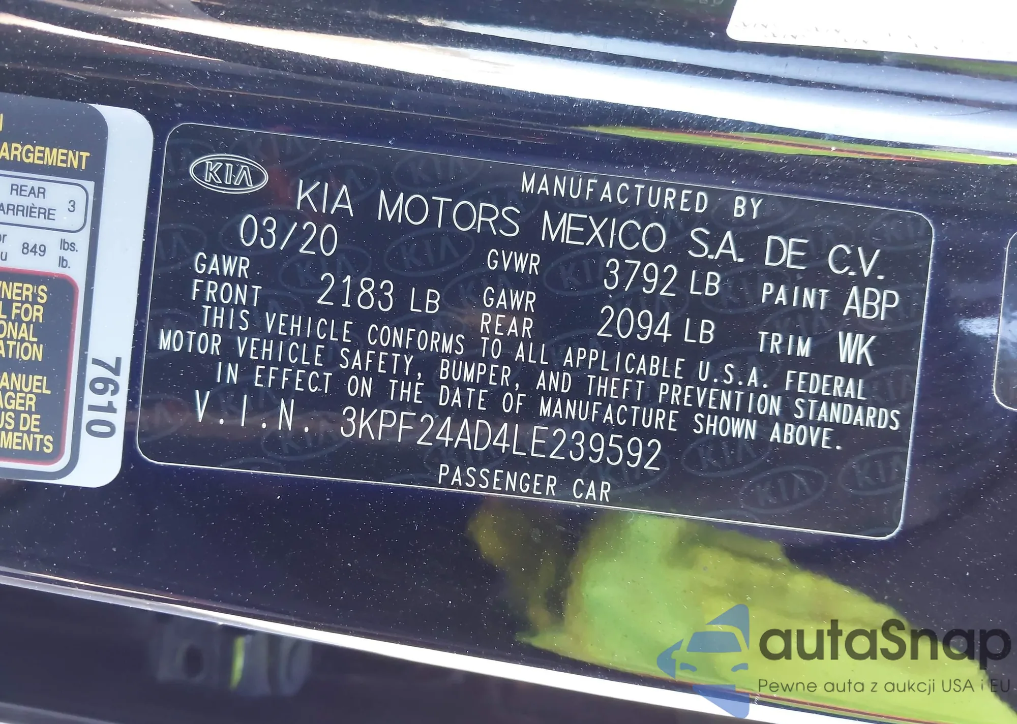 • VIN 3KPF24AD4LE239592