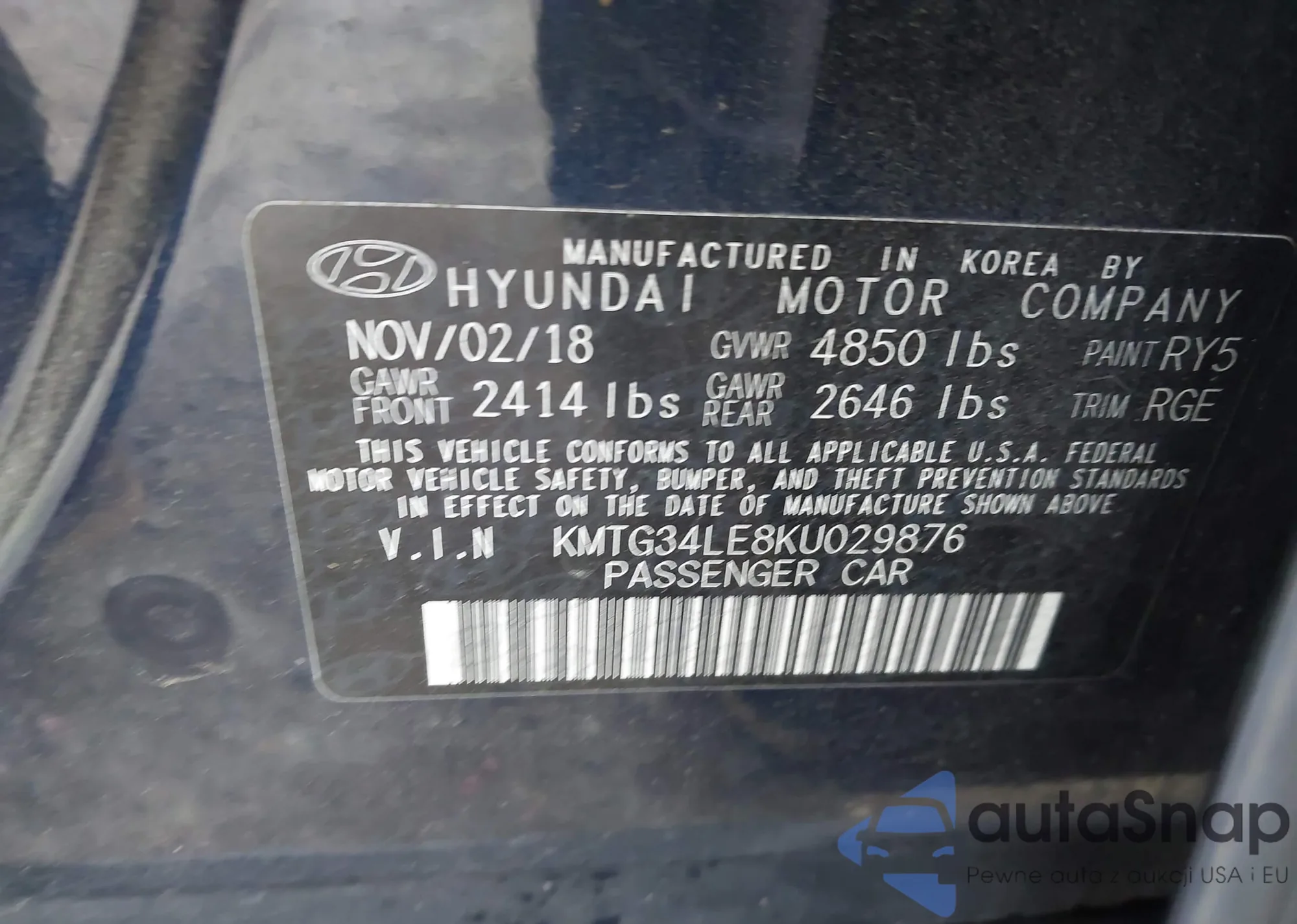 • VIN KMTG34LE8KU029876