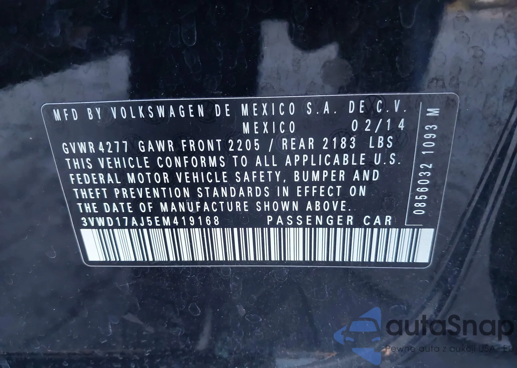 2014 Volkswagen Jetta 1.8T Se z USA, uszkodzony, nr VIN 3VWD17AJ5EM419168