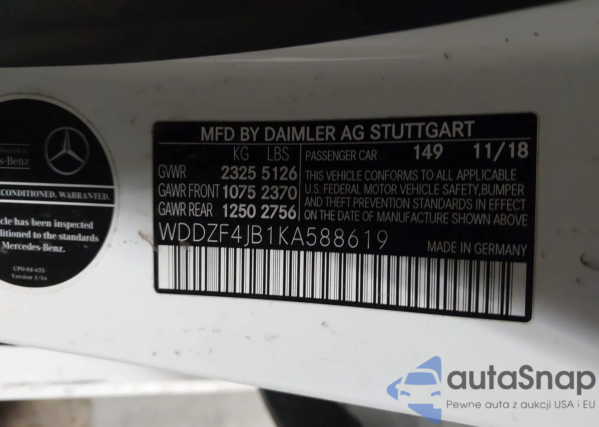 LOT: 43895660 VIN: WDDZF4JB1KA588619