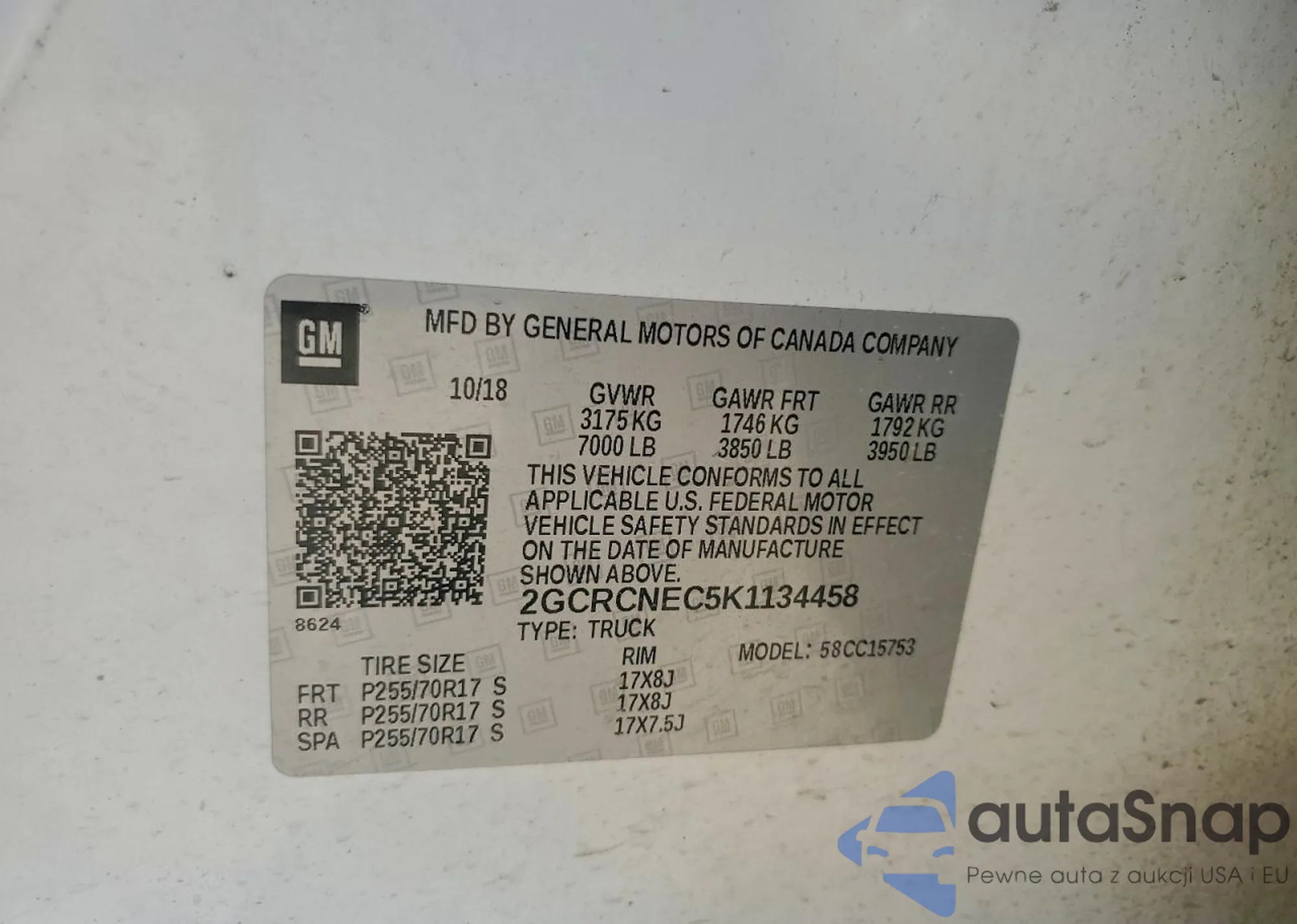 • VIN 2GCRCNEC5K1134458