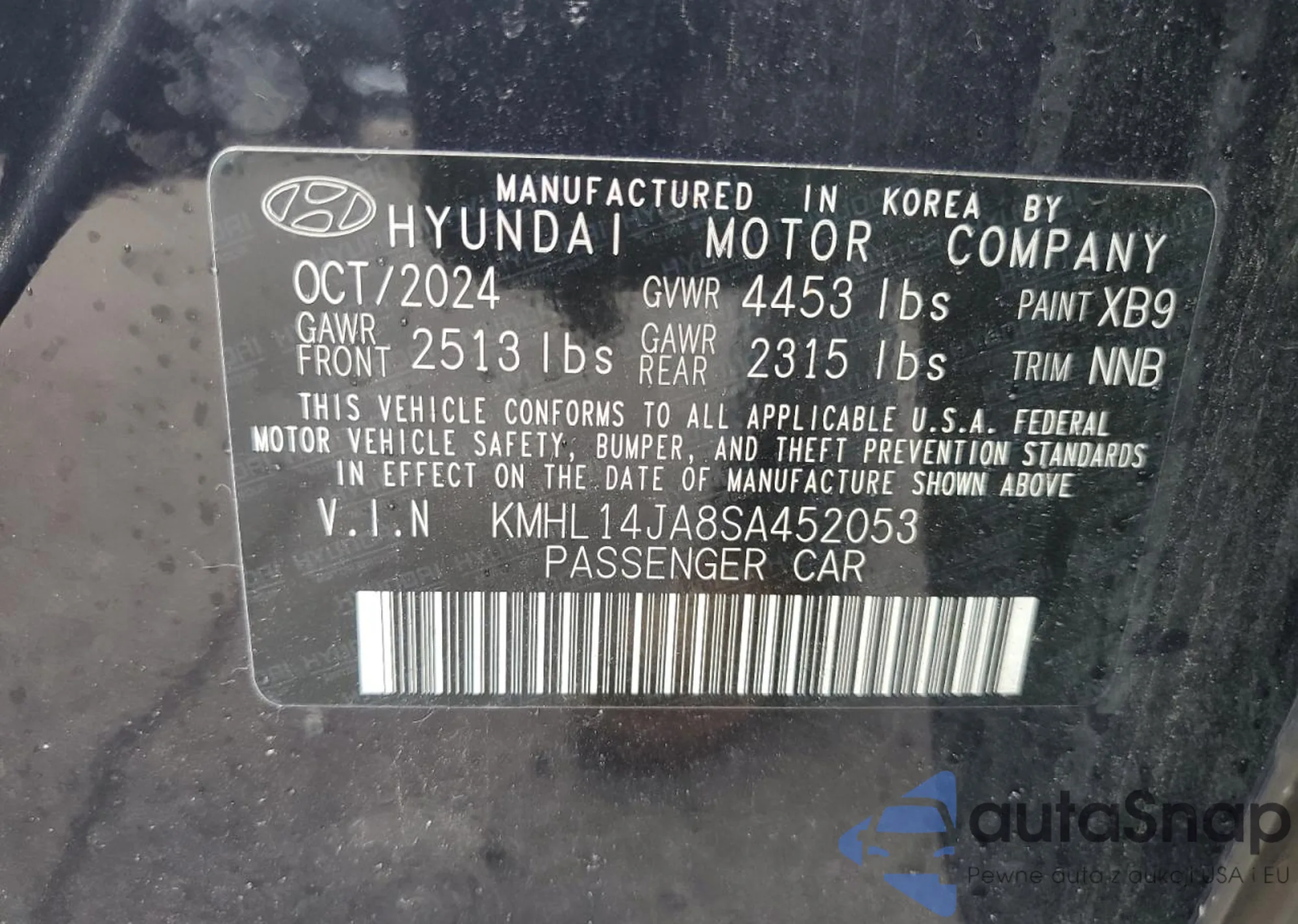 • VIN KMHL14JA8SA452053