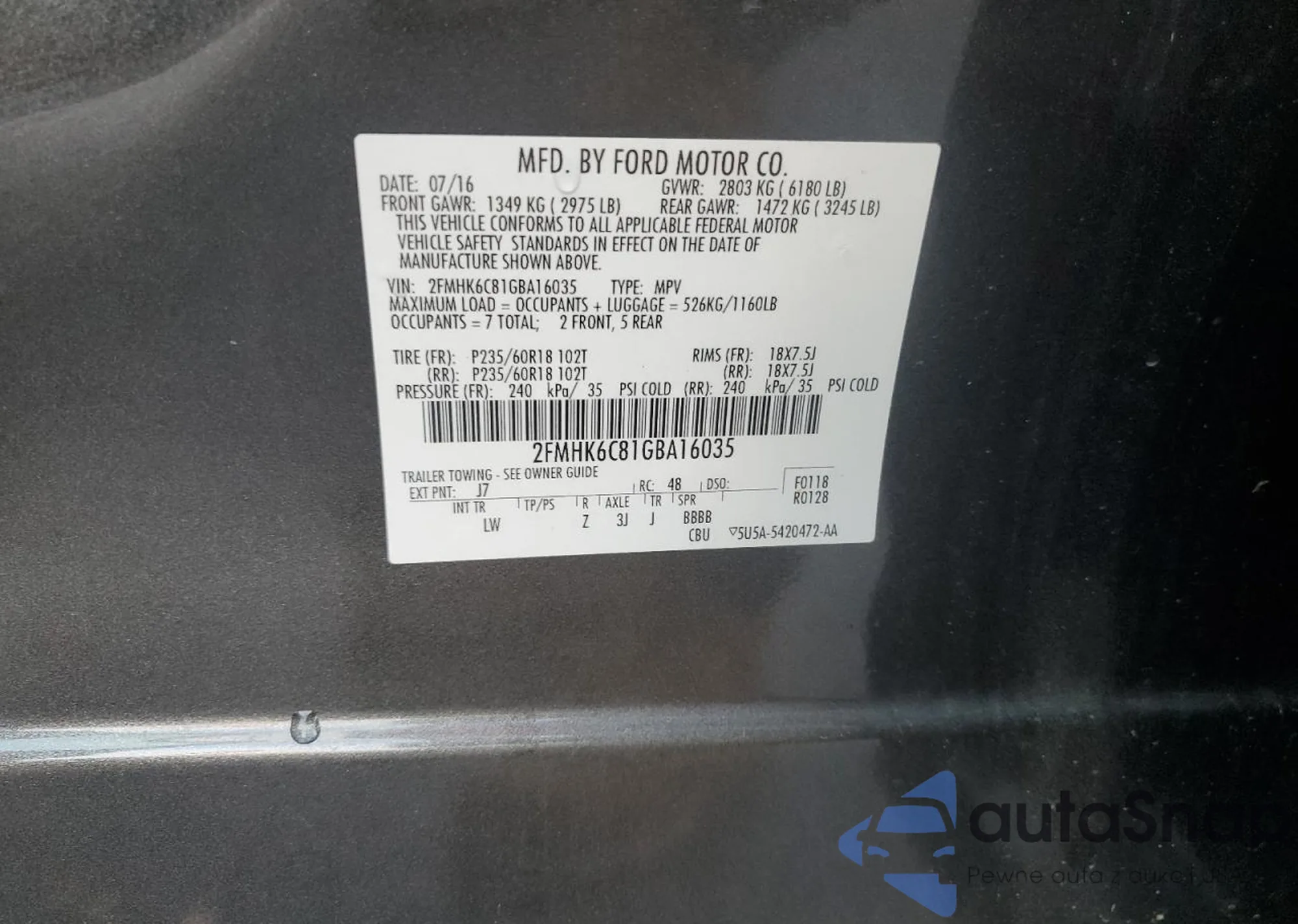 • VIN 2FMHK6C81GBA16035