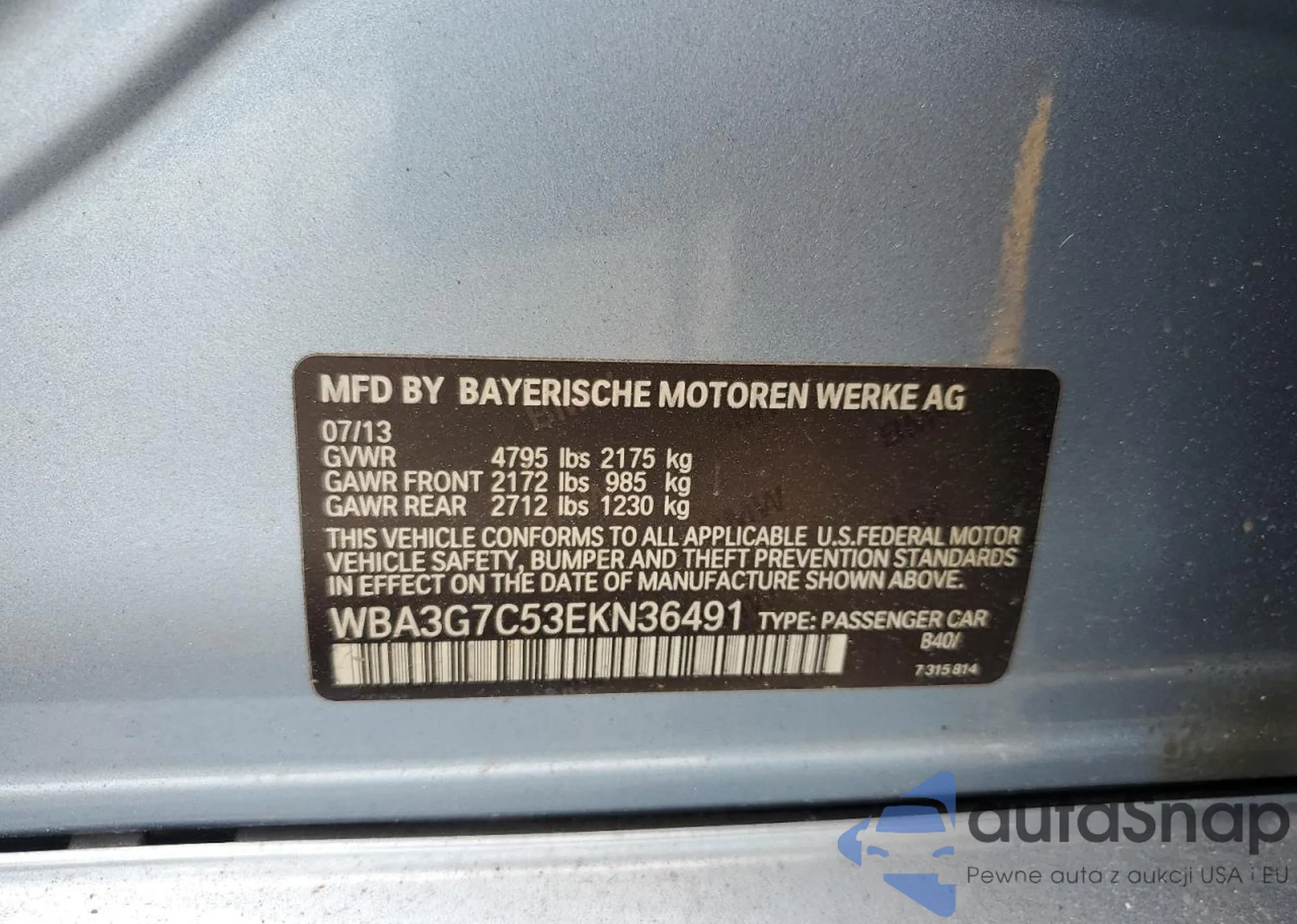 LOT: 90434315 VIN: WBA3G7C53EKN36491