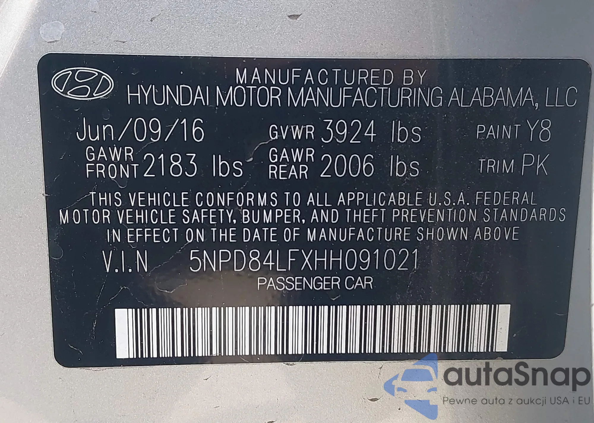 • VIN 5NPD84LFXHH091021