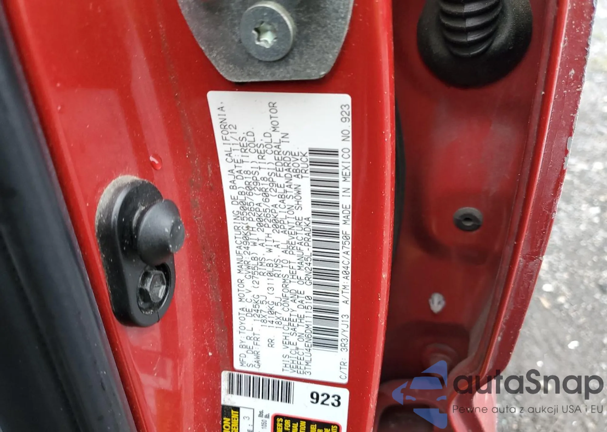2013 Toyota Prius z USA, uszkodzony, nr VIN JTDKN3DU8D1698981