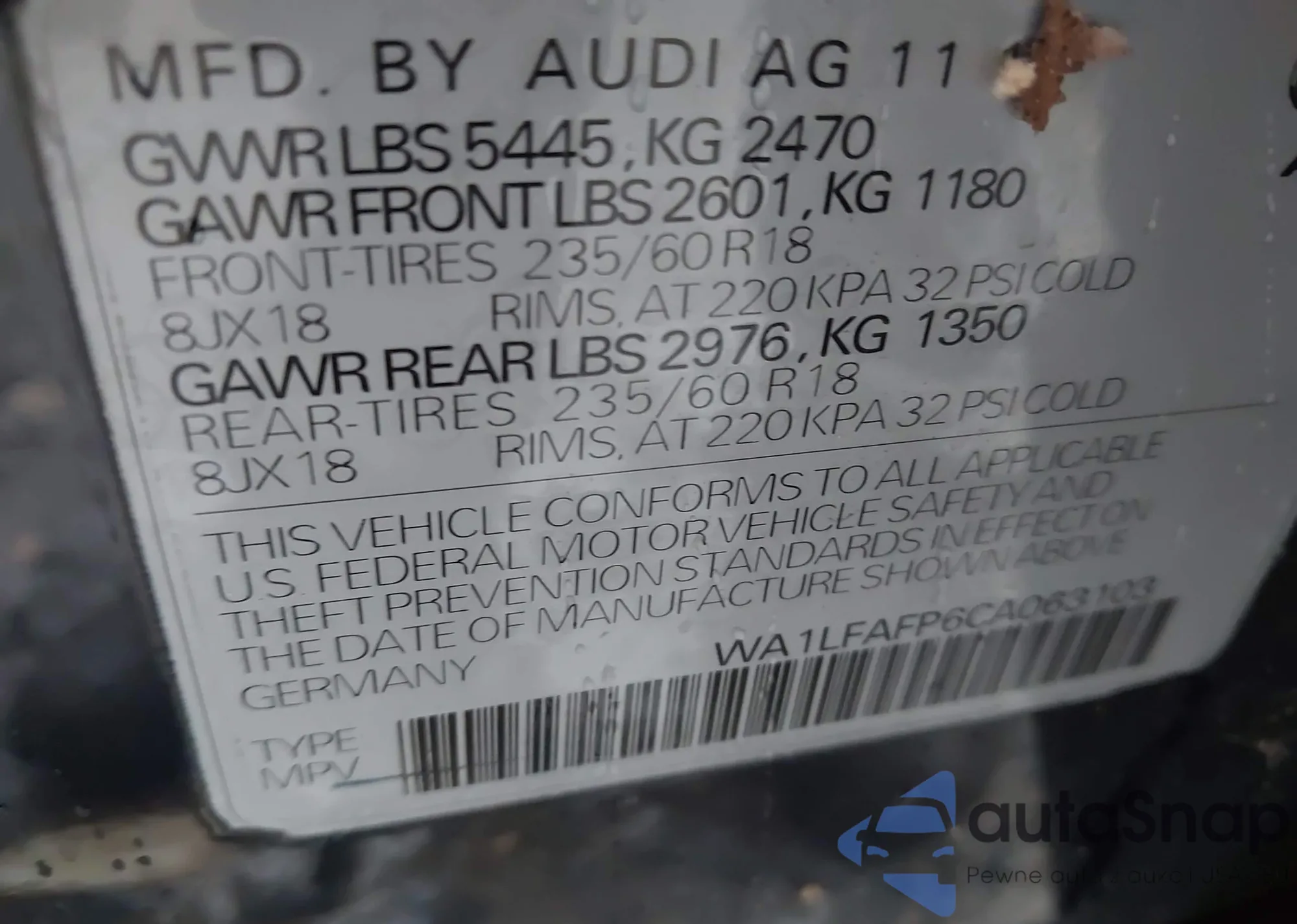 LOT: 43829615 VIN: 4S4BRBAC8A3385127