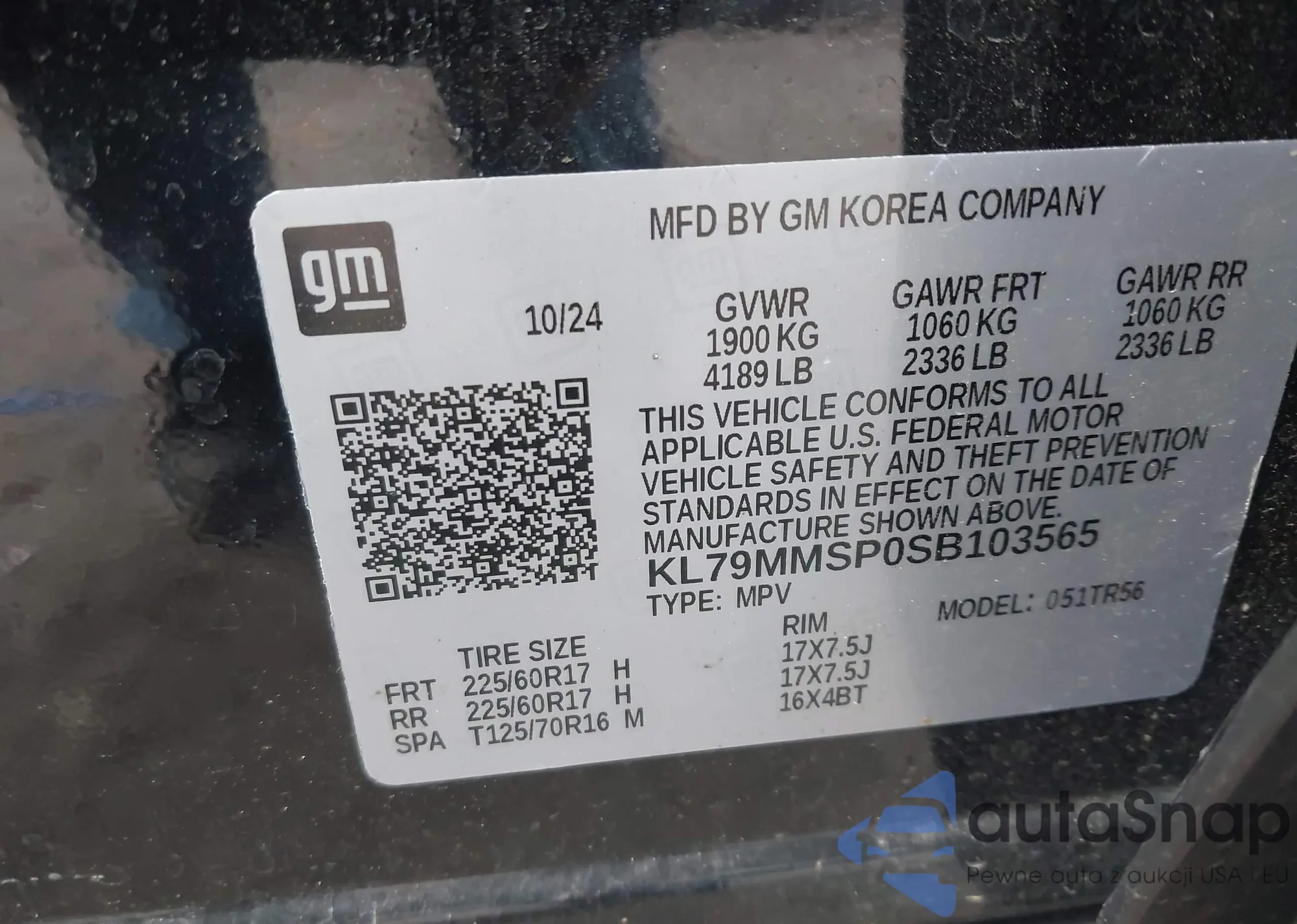 • VIN KL79MMSP0SB103565