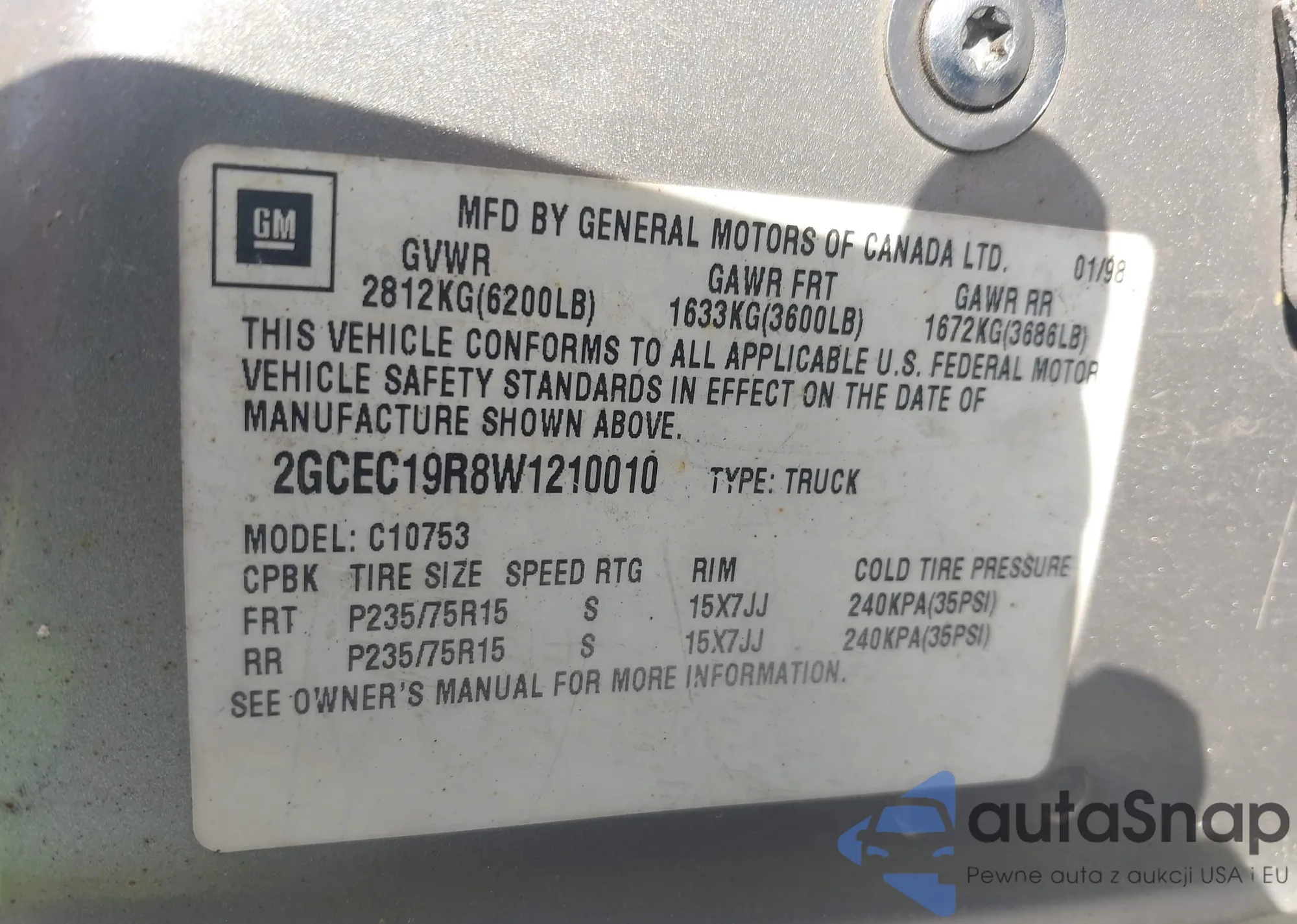 • VIN 2GCEC19R8W1210010