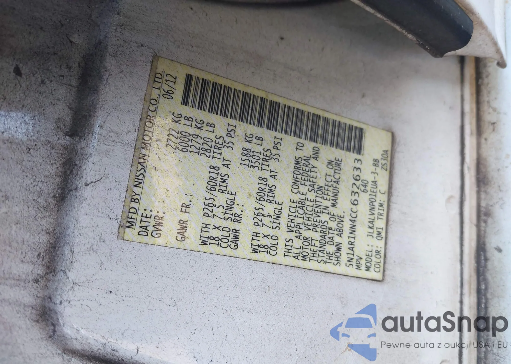 LOT: 43829280 VIN: 4S4BP61C757303951