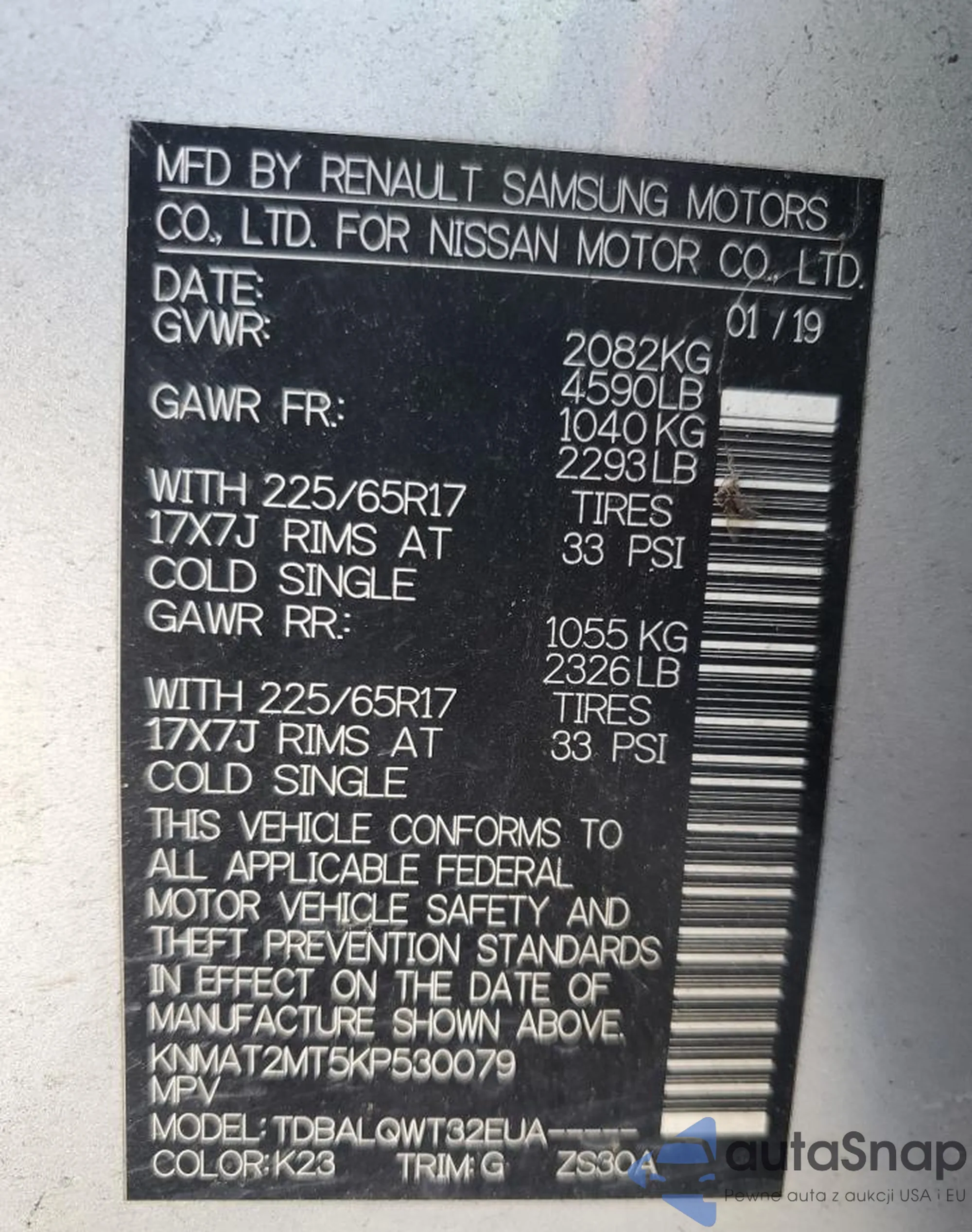 LOT: 91362795 VIN: KNMAT2MT5KP530079